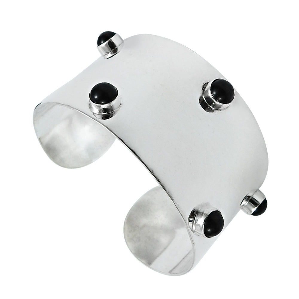 Birthday Gift 925 Sterling Silver Natural Black Onyx Gemstone Cuff Bangle Q1