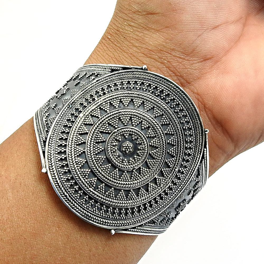 Solid 925 Sterling Silver Indian Artisan Cuff Bangle