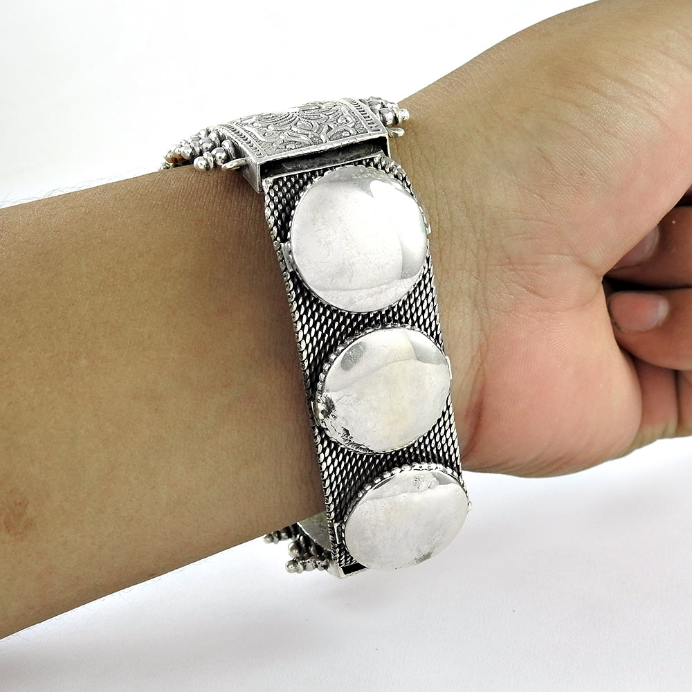 Vintage 925 Sterling Silver Antique Look Artisan Cuff Bangle