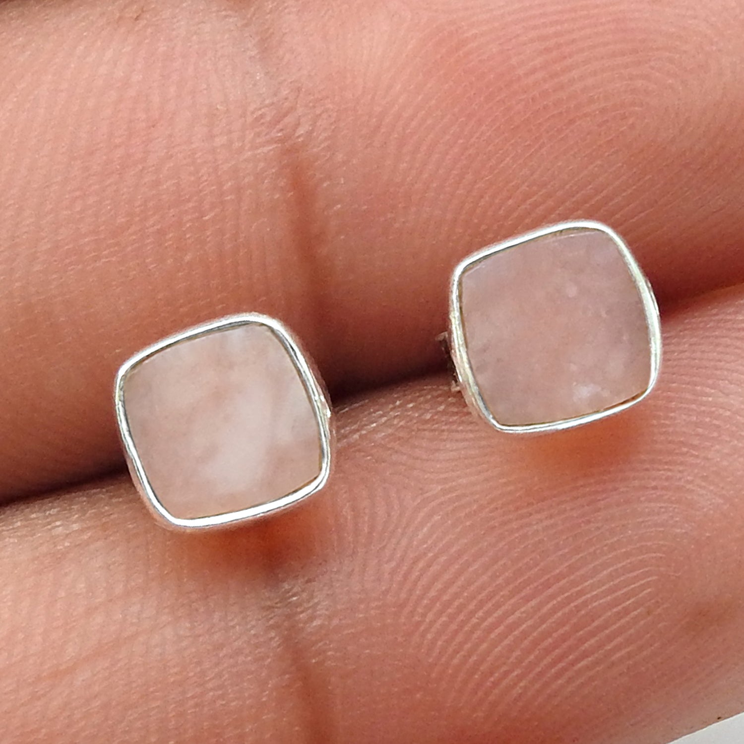 6mm Square Pink Opal 925 Sterling Silver Stud Earrings Women Jewelry