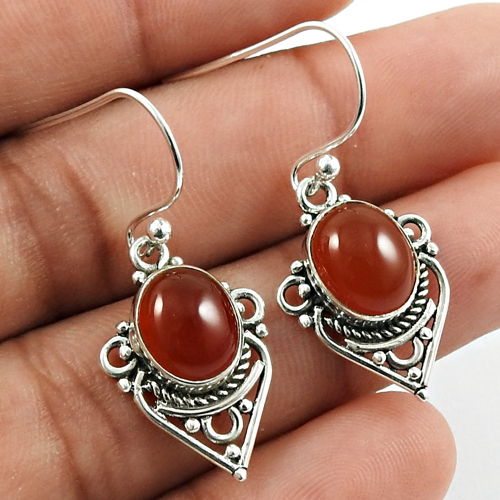 Natural Carnelian Gemstone Drop Dangle Bohemian Earrings 925 Silver For Girls F6