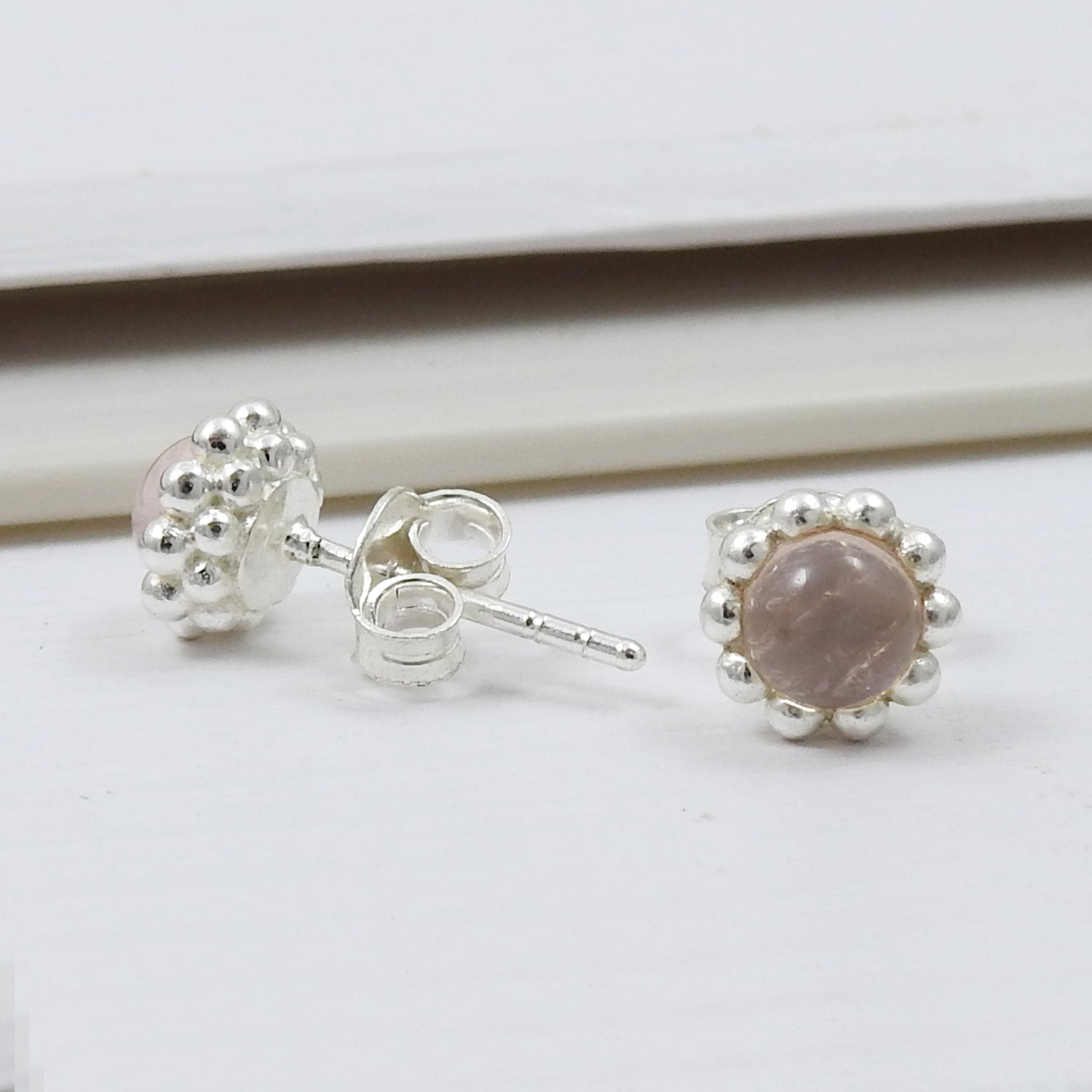 Natural Rose Quartz Gemstone 925 Sterling Silver Minimalist Stud Earrings