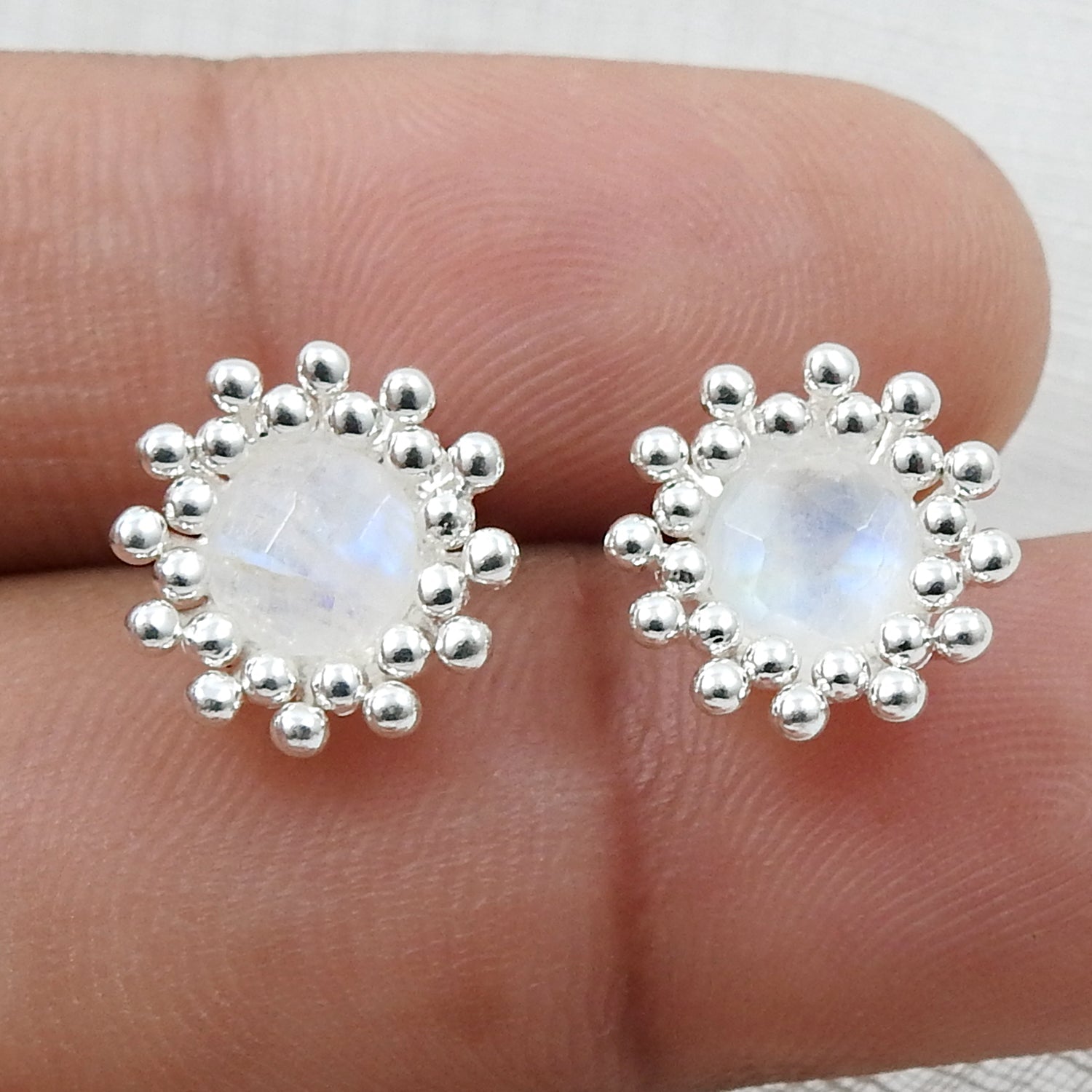 Rainbow Moonstone Sterling Silver Minimalist Stud Earrings