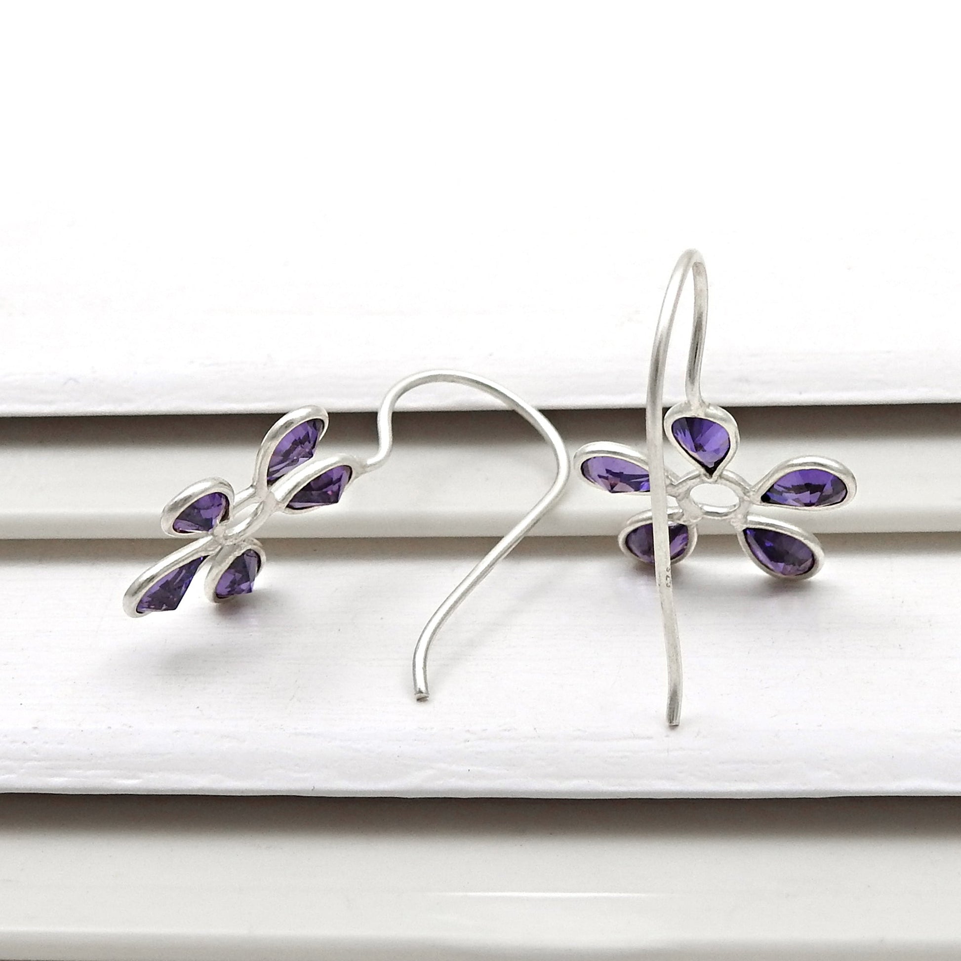 Solid 925 Silver Natural Amethyst Gemstone Flower Earrings