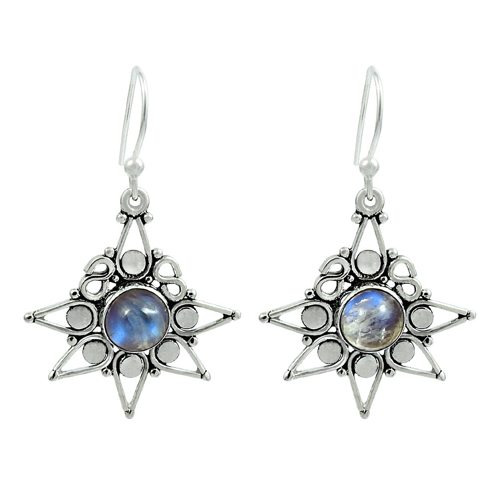 Solid 925 Silver Natural Rainbow Moonstone Charming Earrings Gift For Girls A8