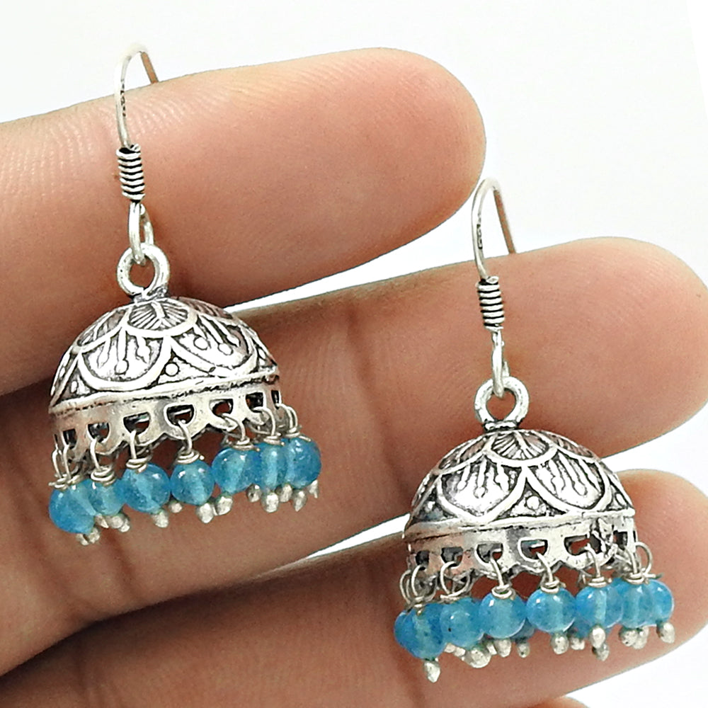 Woman Gift 925 Silver Natural Blue Topaz Gemstone Dangle Jhumki Earrings P3