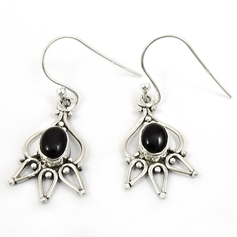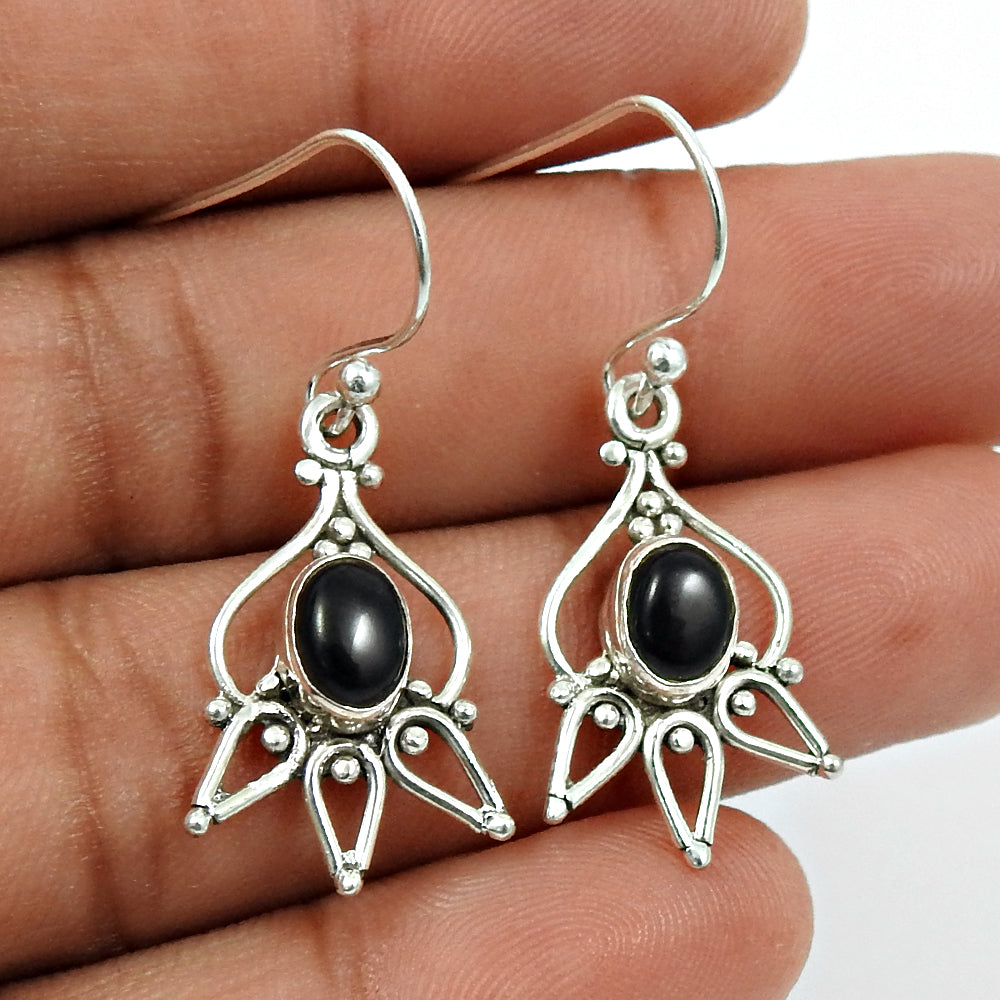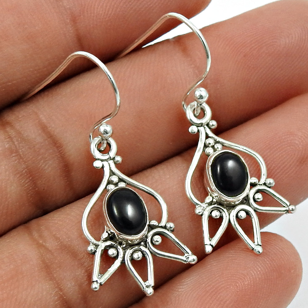 Woman Gift Natural Black Onyx Drop Dangle Bohemian Earrings 925 Silver B16