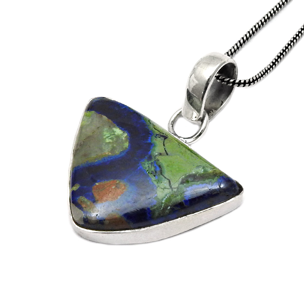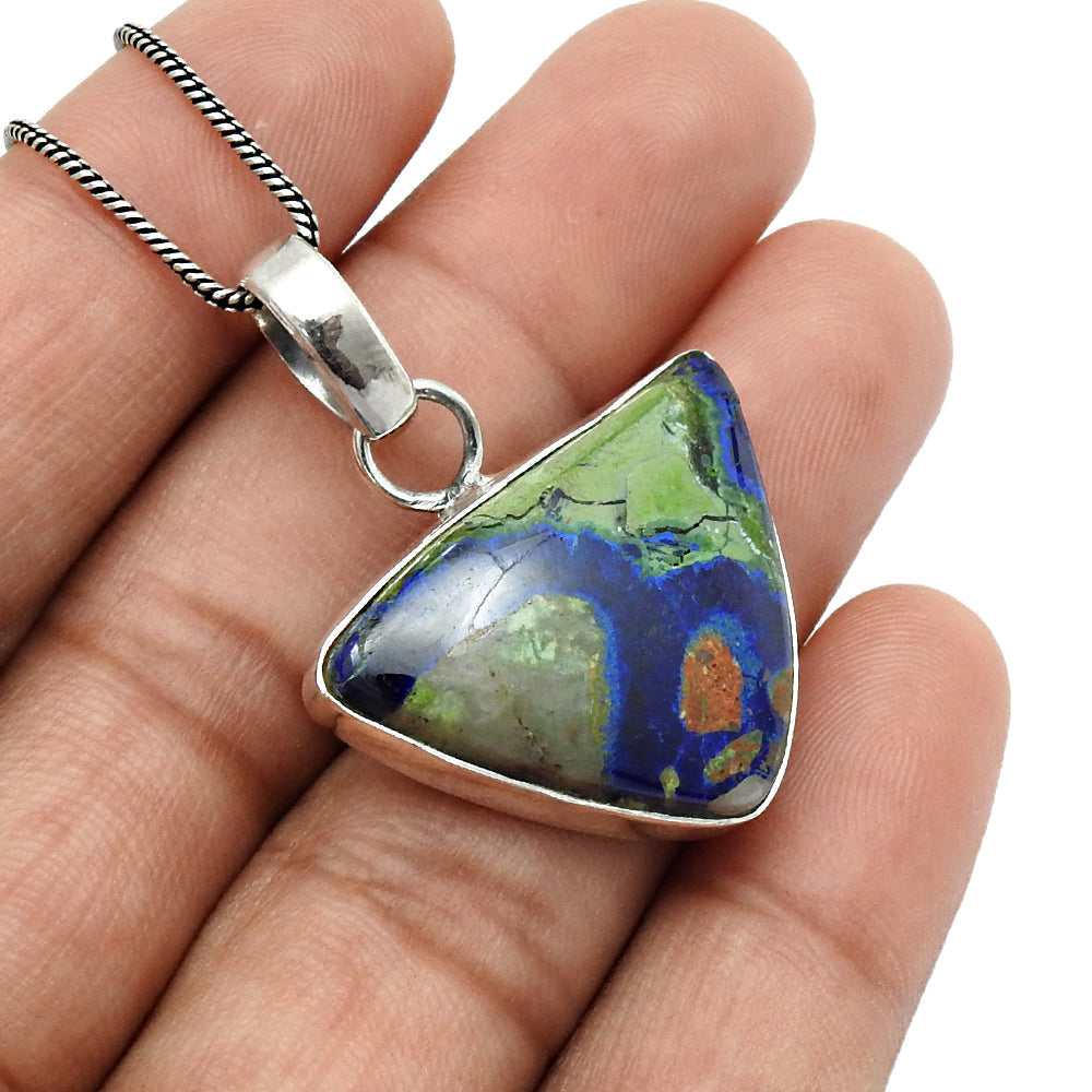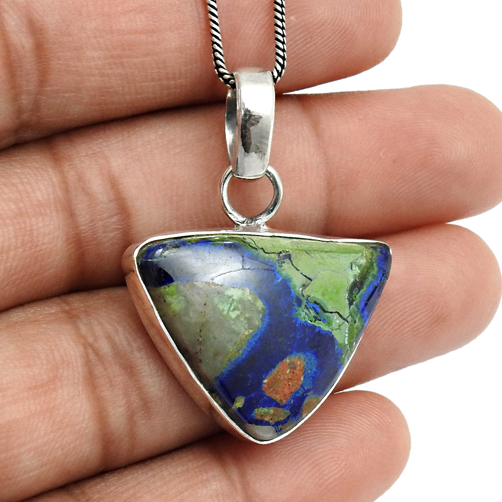 Natural Azurite Malachite Gemstone 925 Sterling Silver Pendant For Women M11
