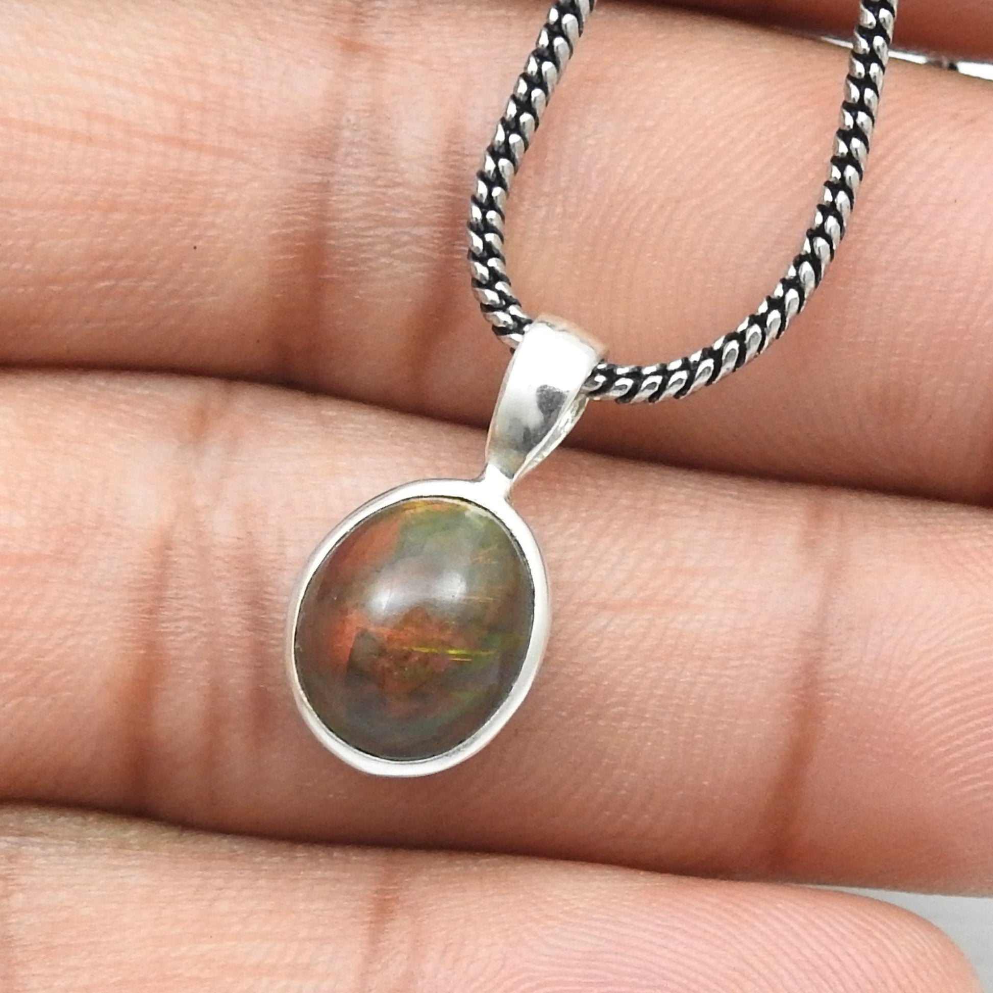 Natural Black Opal 925 Sterling Silver Bezel Pendant