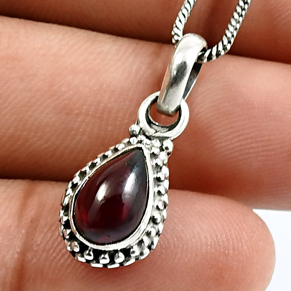 Natural Garnet Gemstone Pendant Tribal Red 925 Sterling Silver Jewelry E89