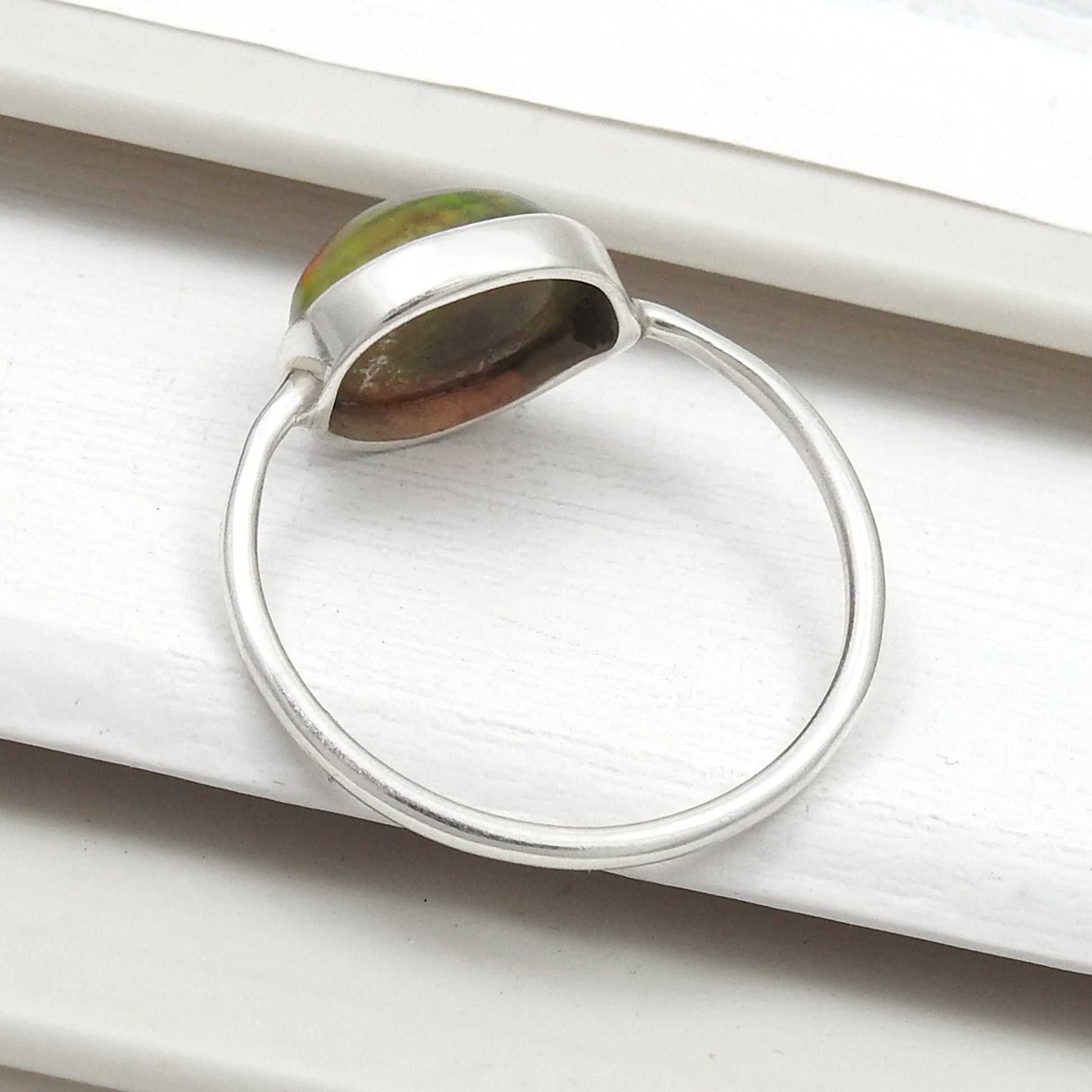 Black Opal Stone Band Wedding Birthday Ring Jewelry Solid Sterling Silver