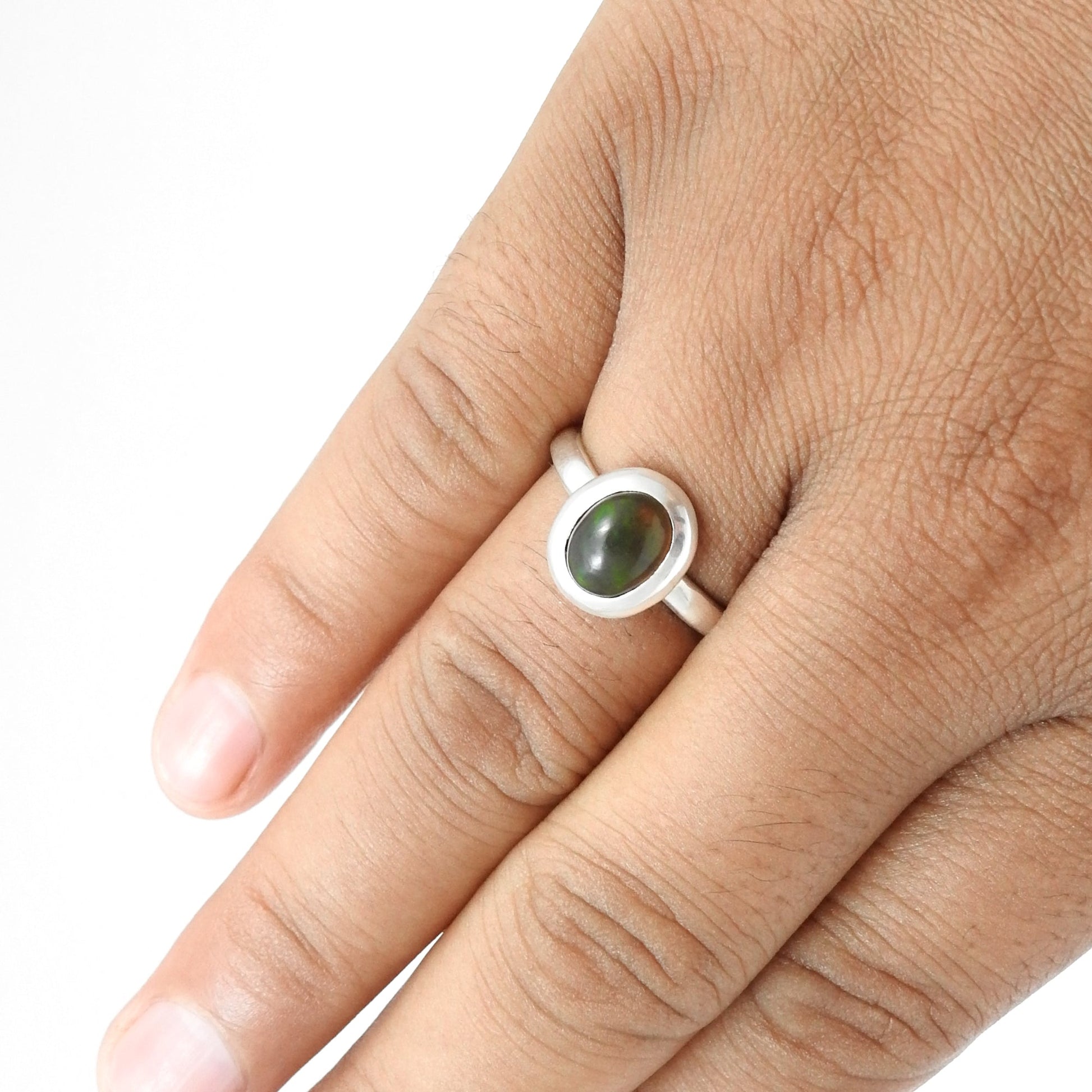Black Opal Stone Statement Bezel Cocktail Anniversary Ring Jewelry 925 Silver