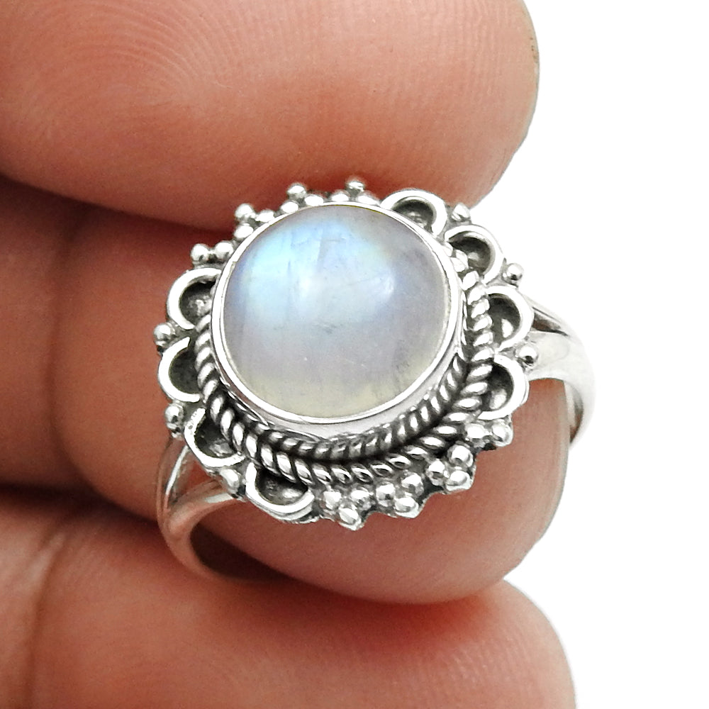 Gift For Her 925 Silver Natural Rainbow Moonstone Cocktail Ring K18