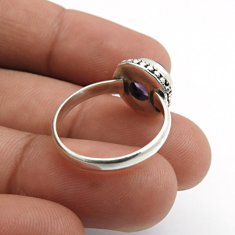 Natural Amethyst Gemstone Chunky Ring 925 Sterling Silver Handmade F14