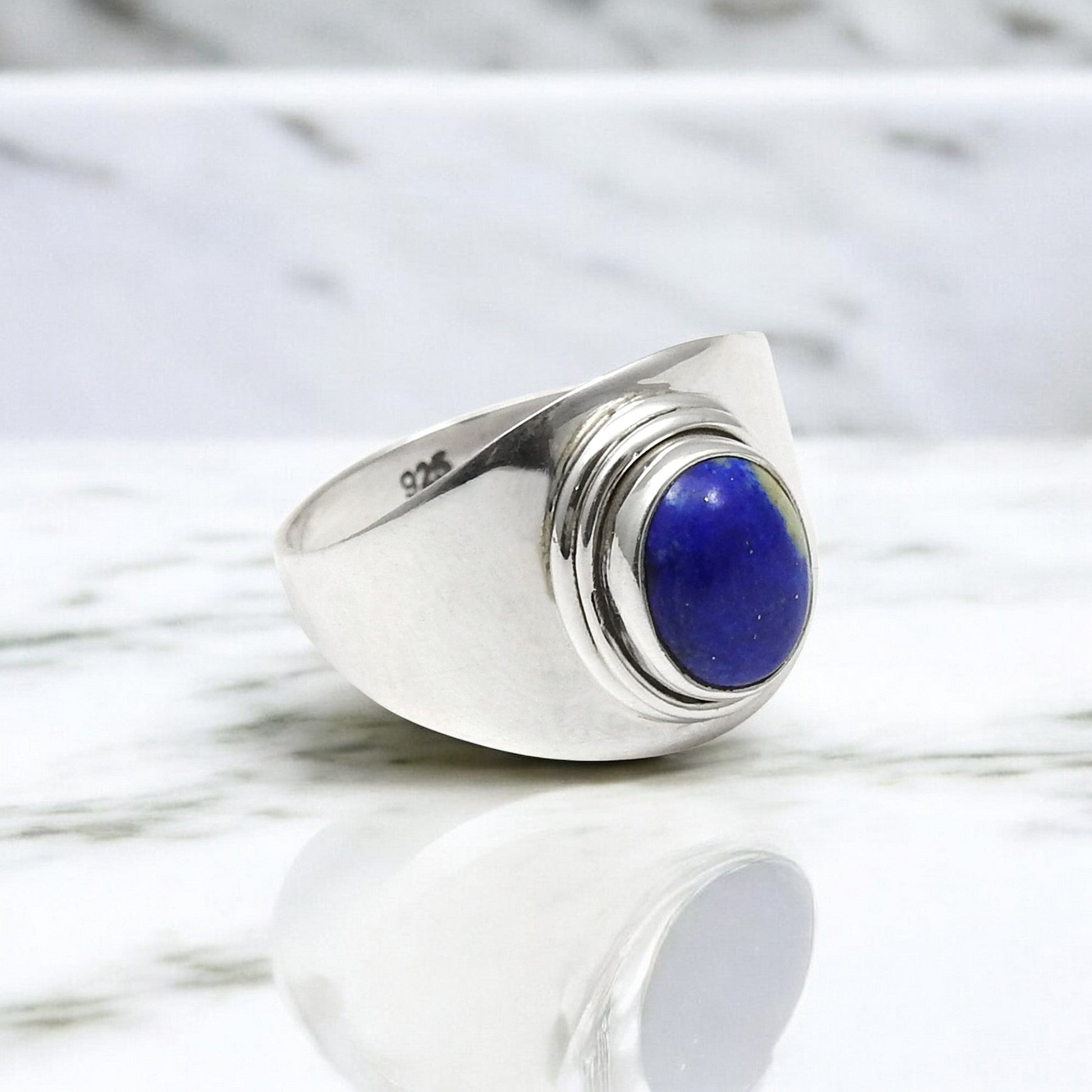 Natural Lapis Lazuli Gemstone 925 Sterling Silver Statement Ring For Her