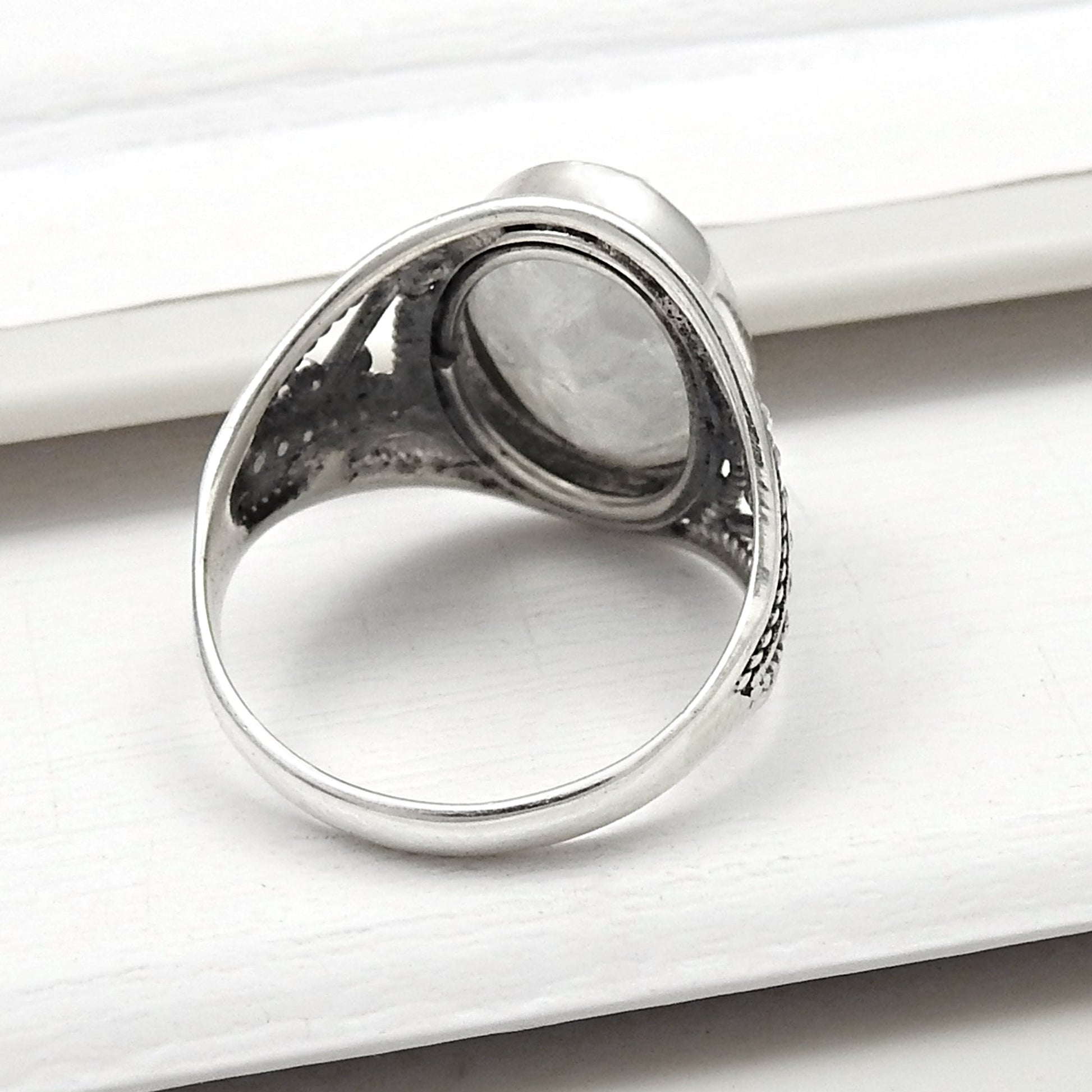 Natural Rainbow Moonstone 925 Sterling Silver Ring Birthday Gift Jewelry