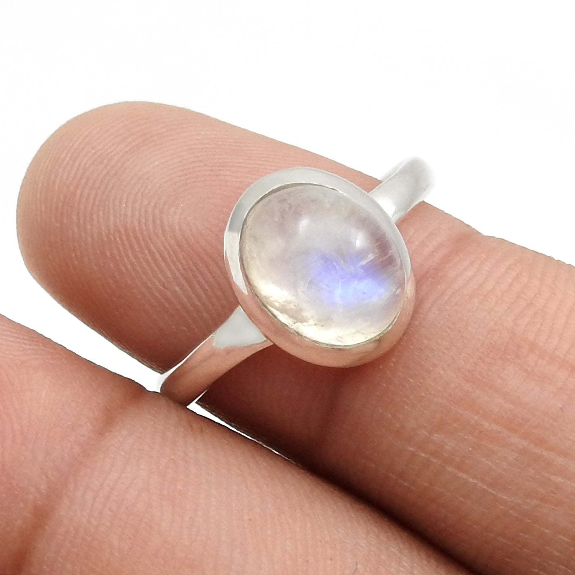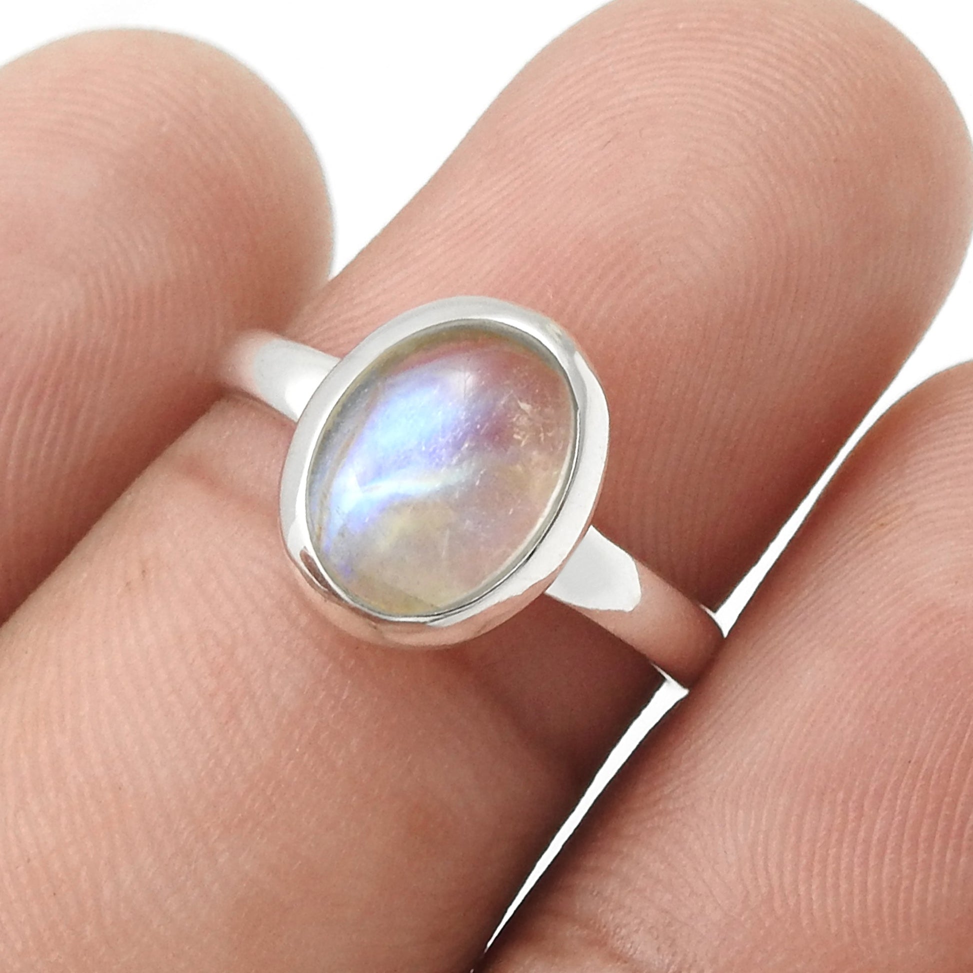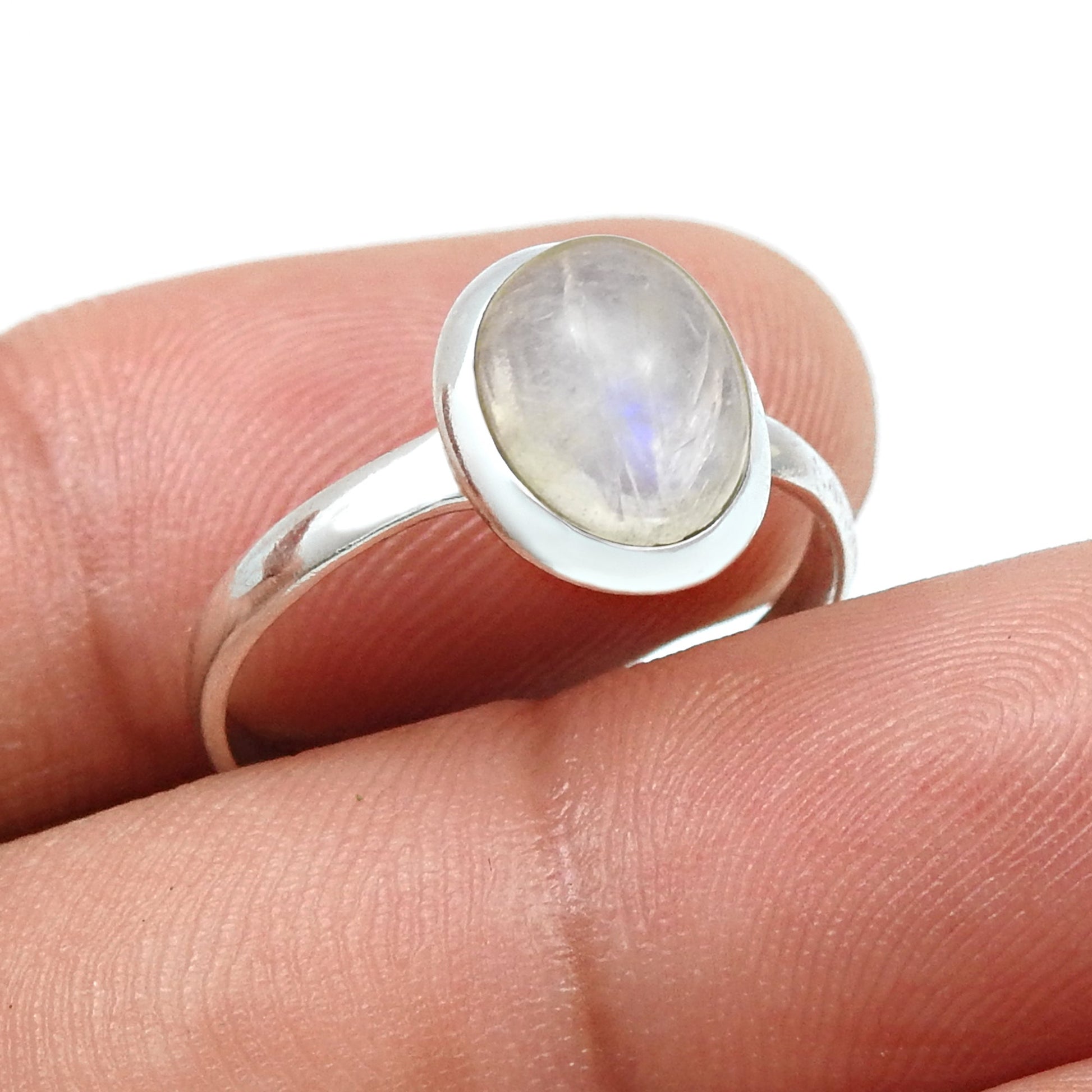 Natural Rainbow Moonstone Wedding Band Ring 925 Sterling Silver