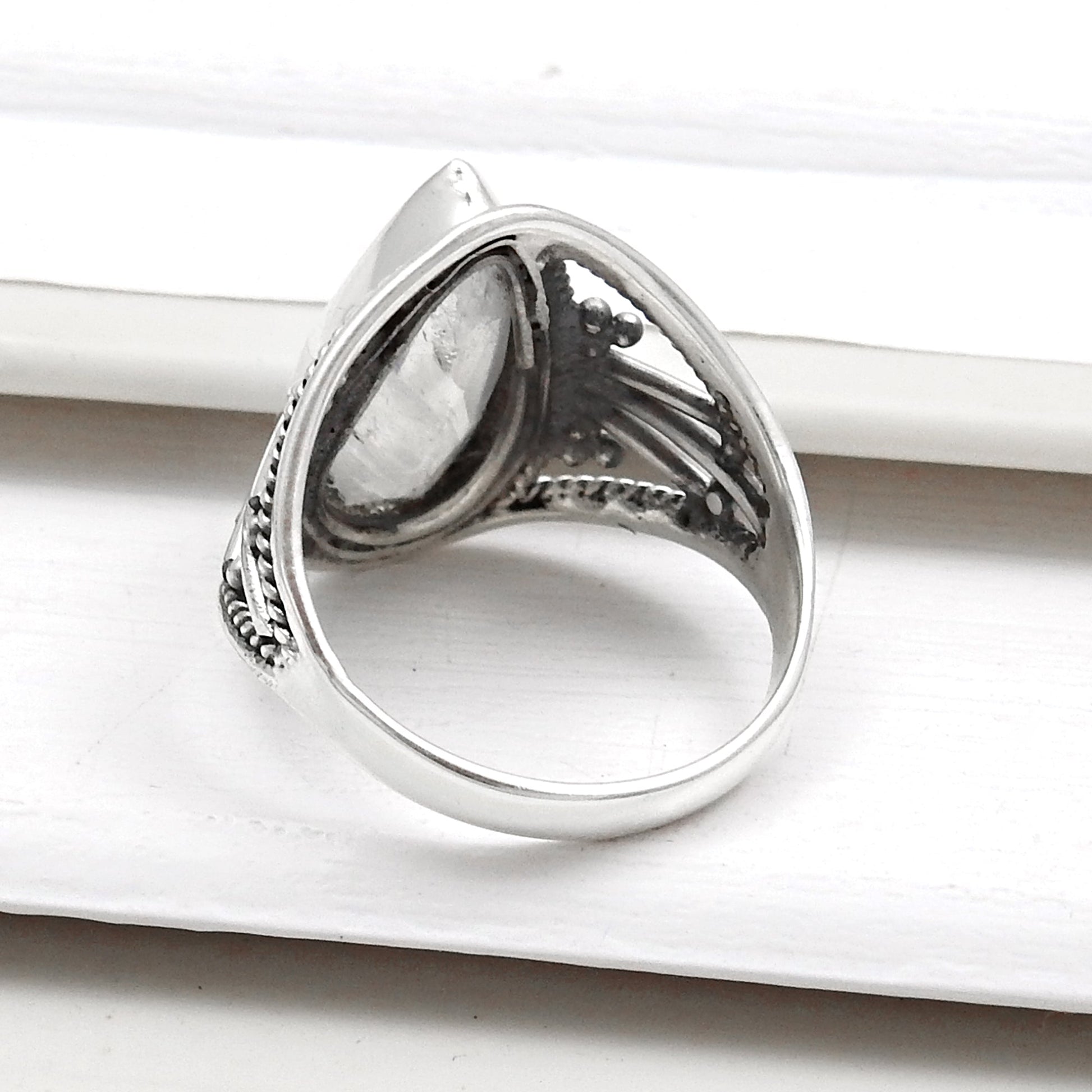Pear Rainbow Moonstone 925 Silver Cocktail Handmade Ring Jewelry Size 7