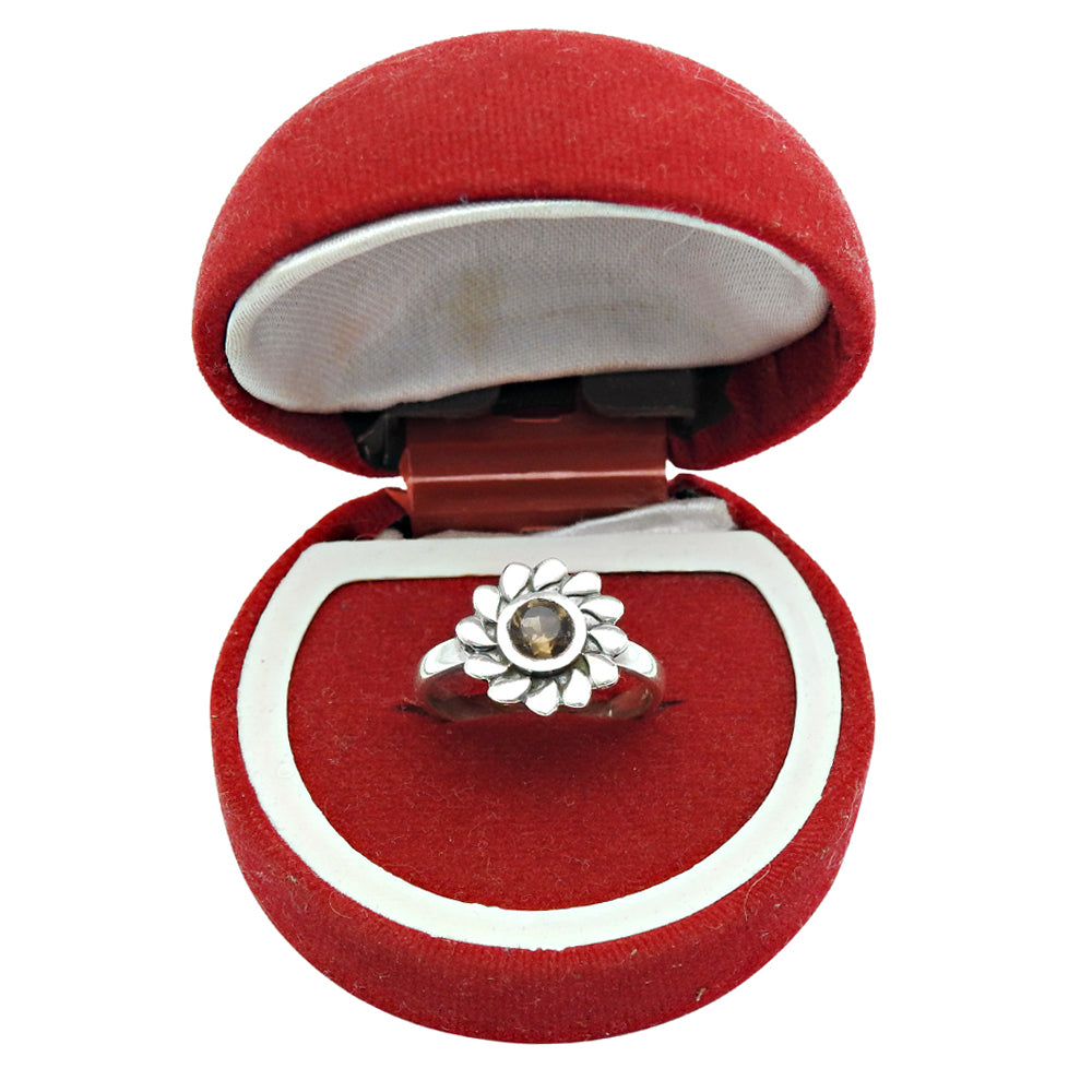 Proposal Ring Natural Smoky Quartz 925 Silver Sunflower Cocktail Ring
