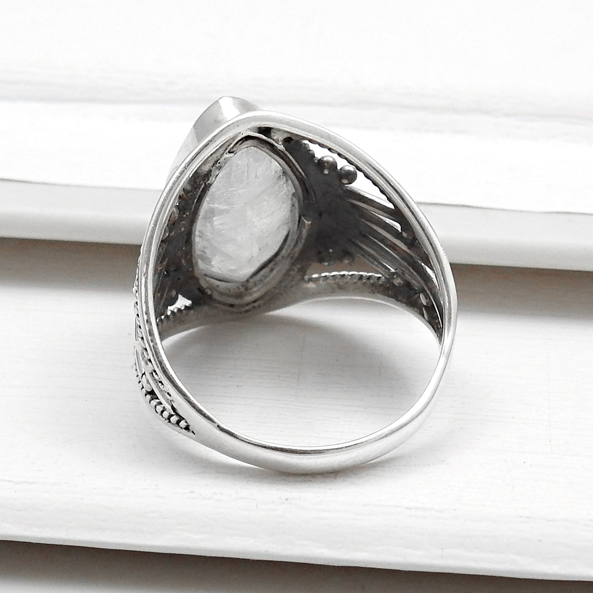 Rainbow Moonstone 925 Sterling Silver Cocktail Ring Size 7.5