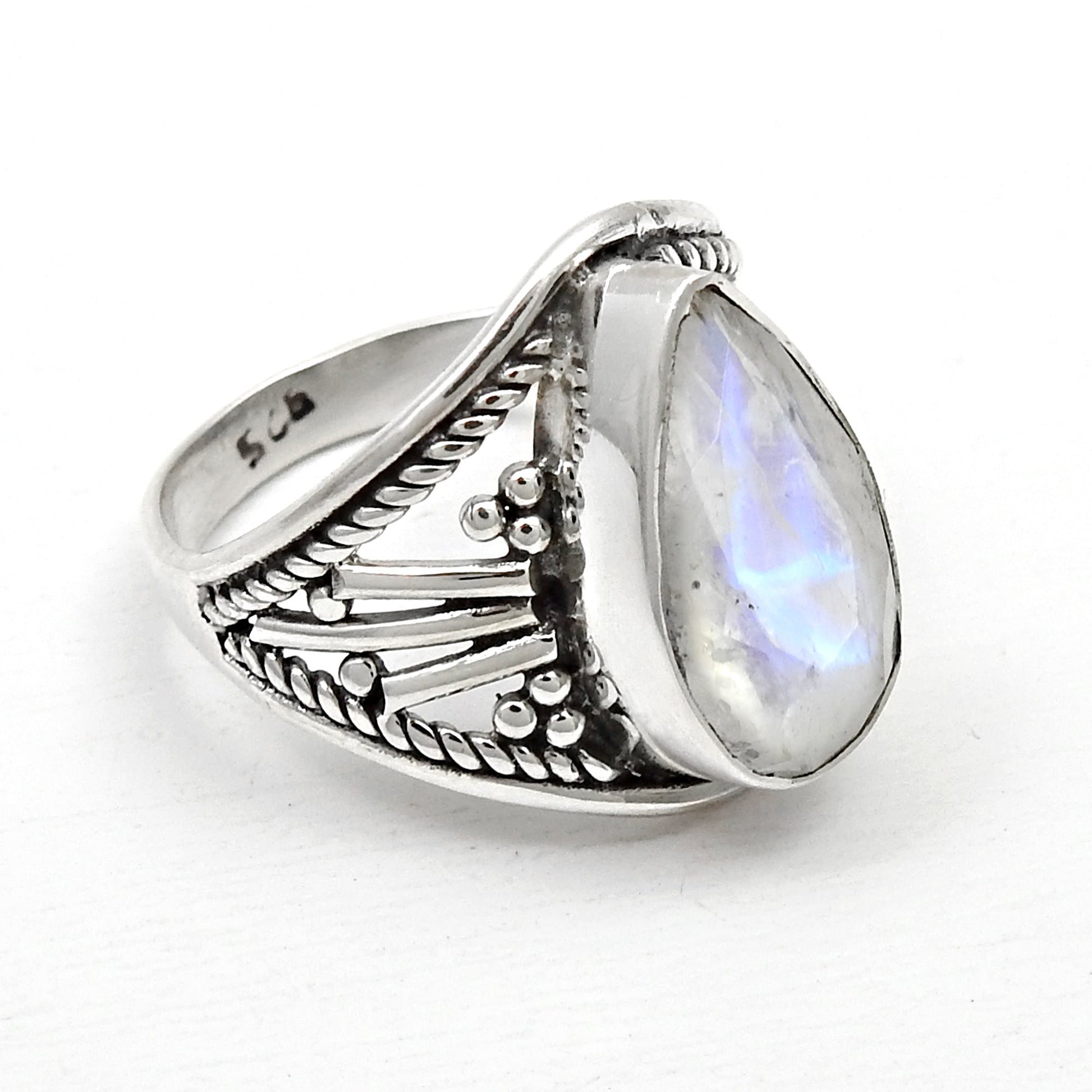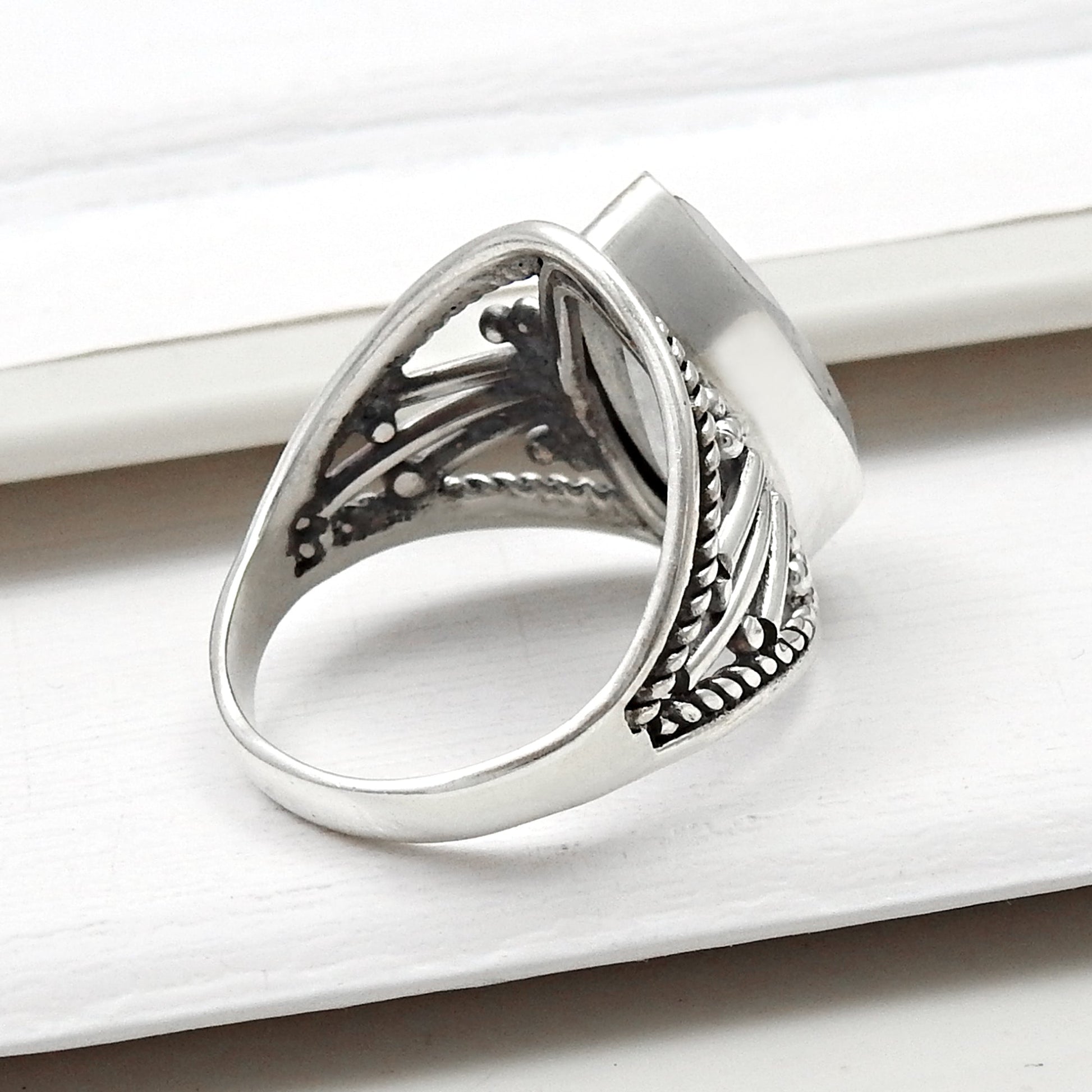 Rainbow Moonstone Solid 925 Sterling Silver Cocktail Ring Size 6