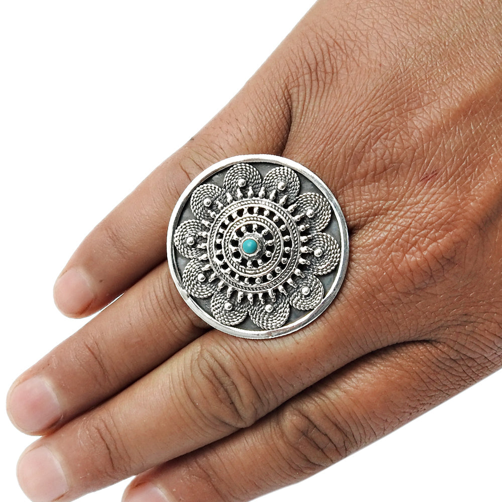 Round Natural Coral Cocktail Unique Antique Artisan Bezel Ring 925 Silver