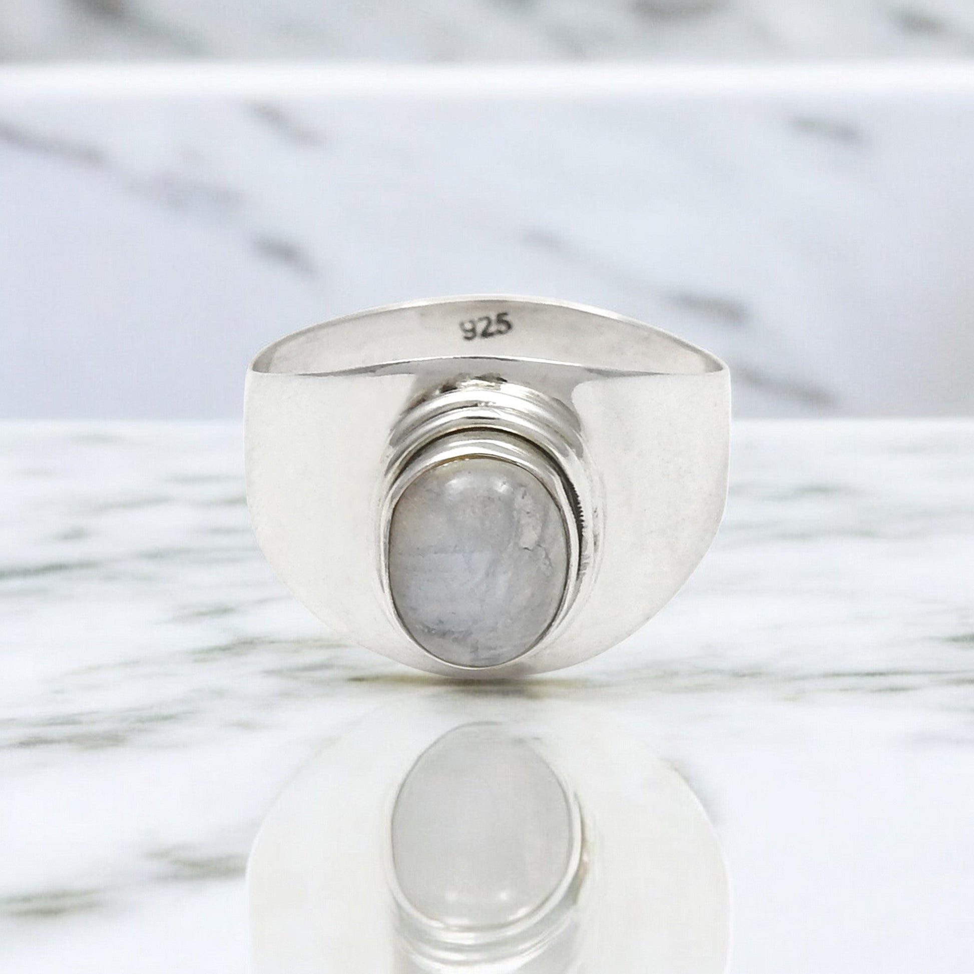 Solid 925 Sterling Silver Natural Rainbow Moonstone Band Ring