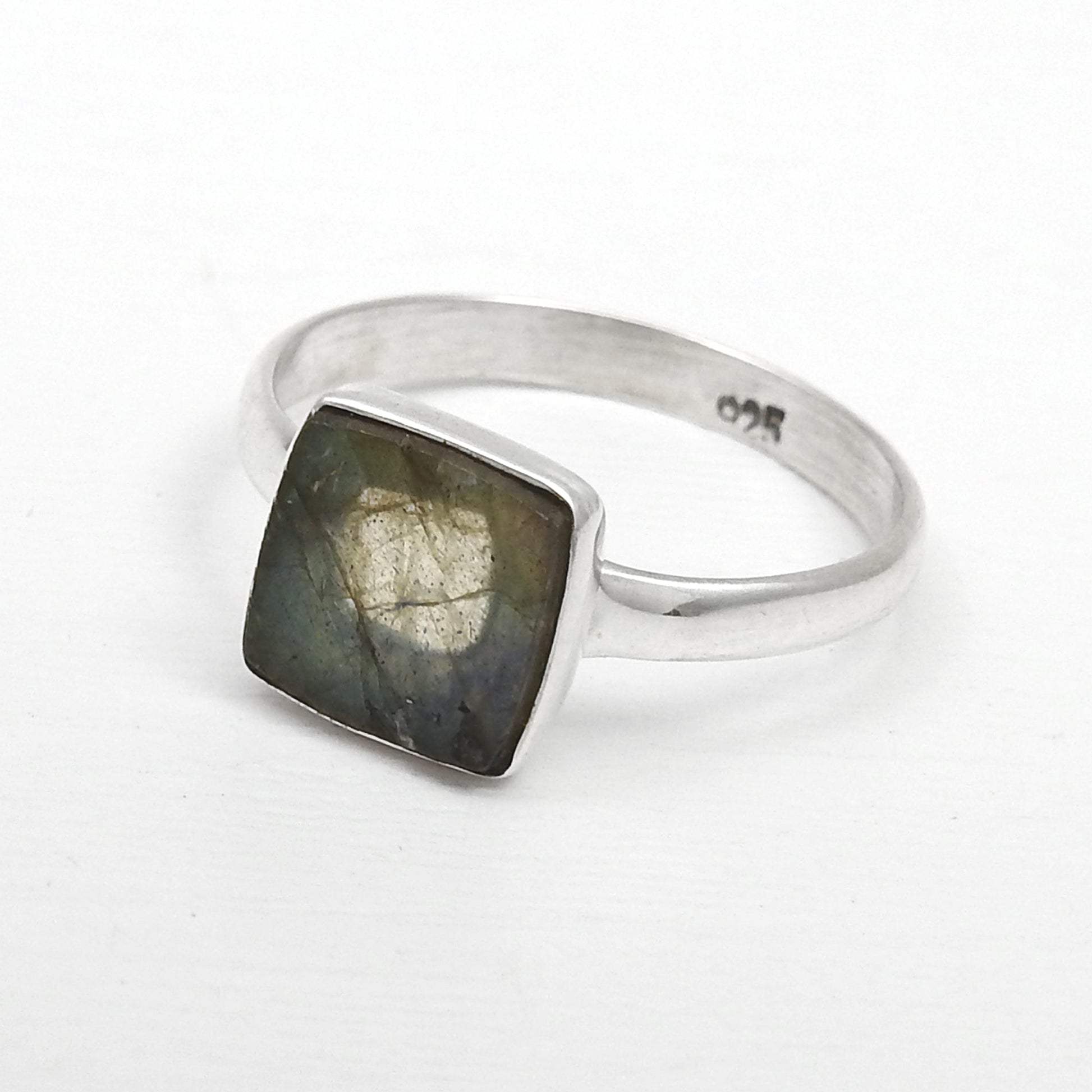 Square Labradorite Gemstone 925 Sterling Silver Band Ring Jewelry
