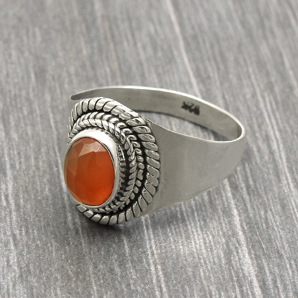 Sterling Silver Oval Natural Carnelian Bezel Cocktail Handcrafted Ring