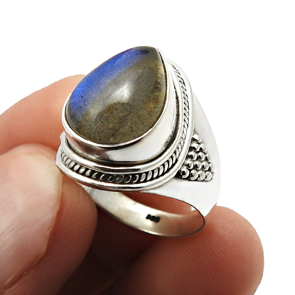 Sterling Silver Pear Labradorite Gemstone Ethnic Solitaire Birthday Ring