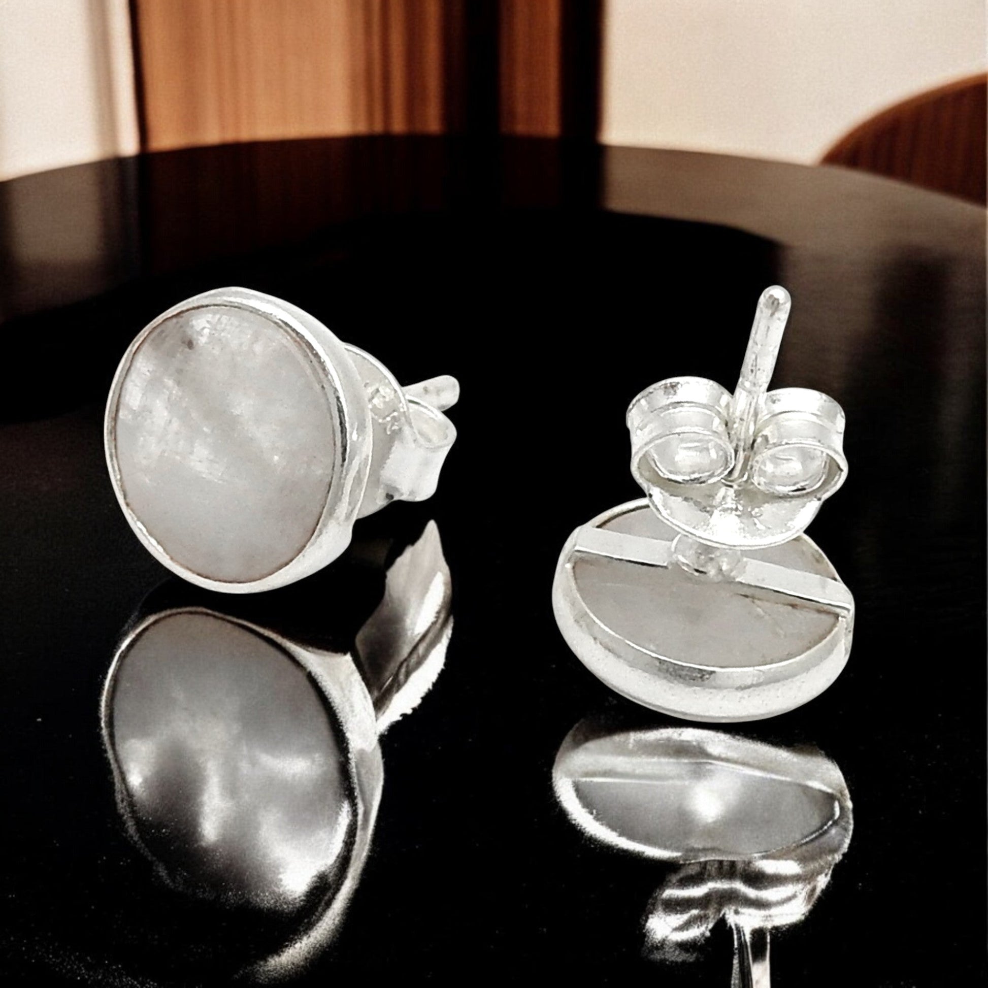 8mm Rainbow Moonstone 925 Sterling Silver Stud Earrings Handmade Jewelry