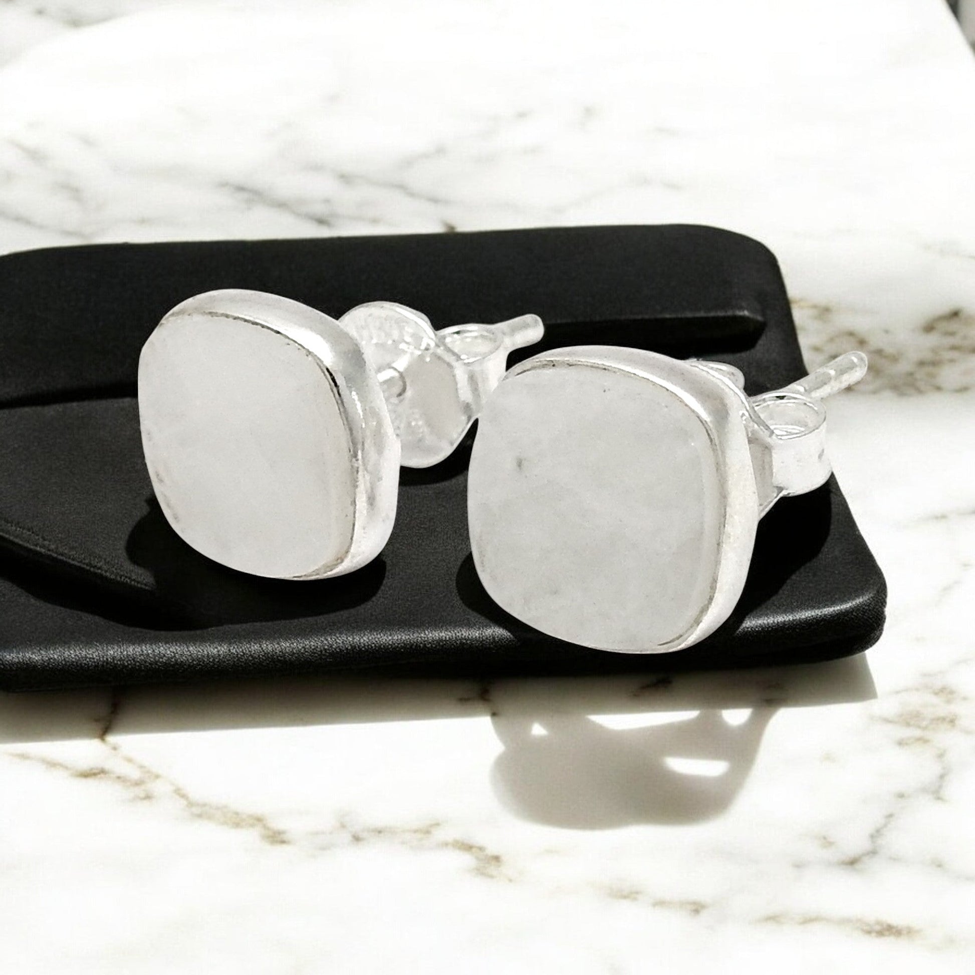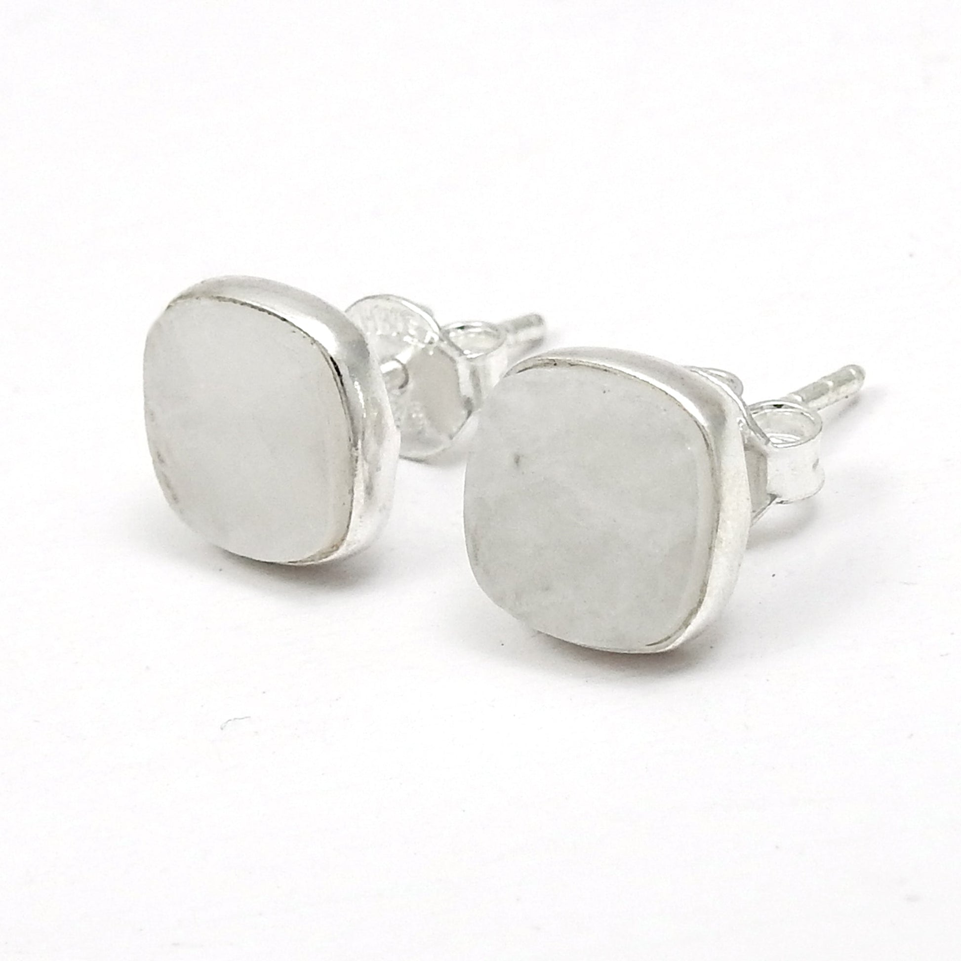8mm Square Rainbow Moonstone 925 Silver Stud Earrings Handmade Jewelry