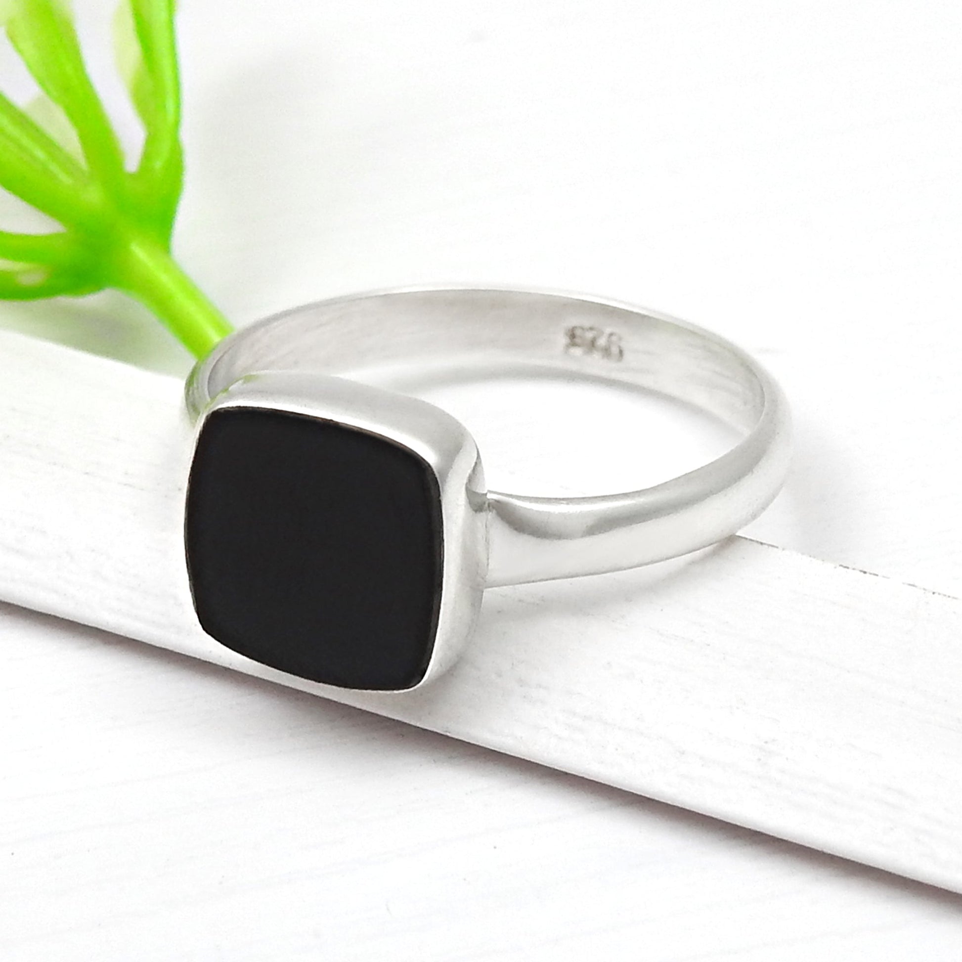 Black Onyx Gemstone 925 Silver Bezel Band Promise Ring
