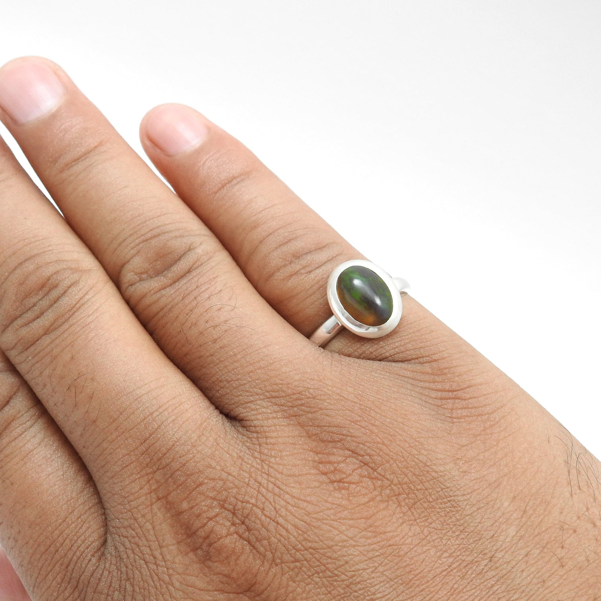 Black Opal Stone Elegant Bezel Band Ring Jewelry Solid Sterling Silver