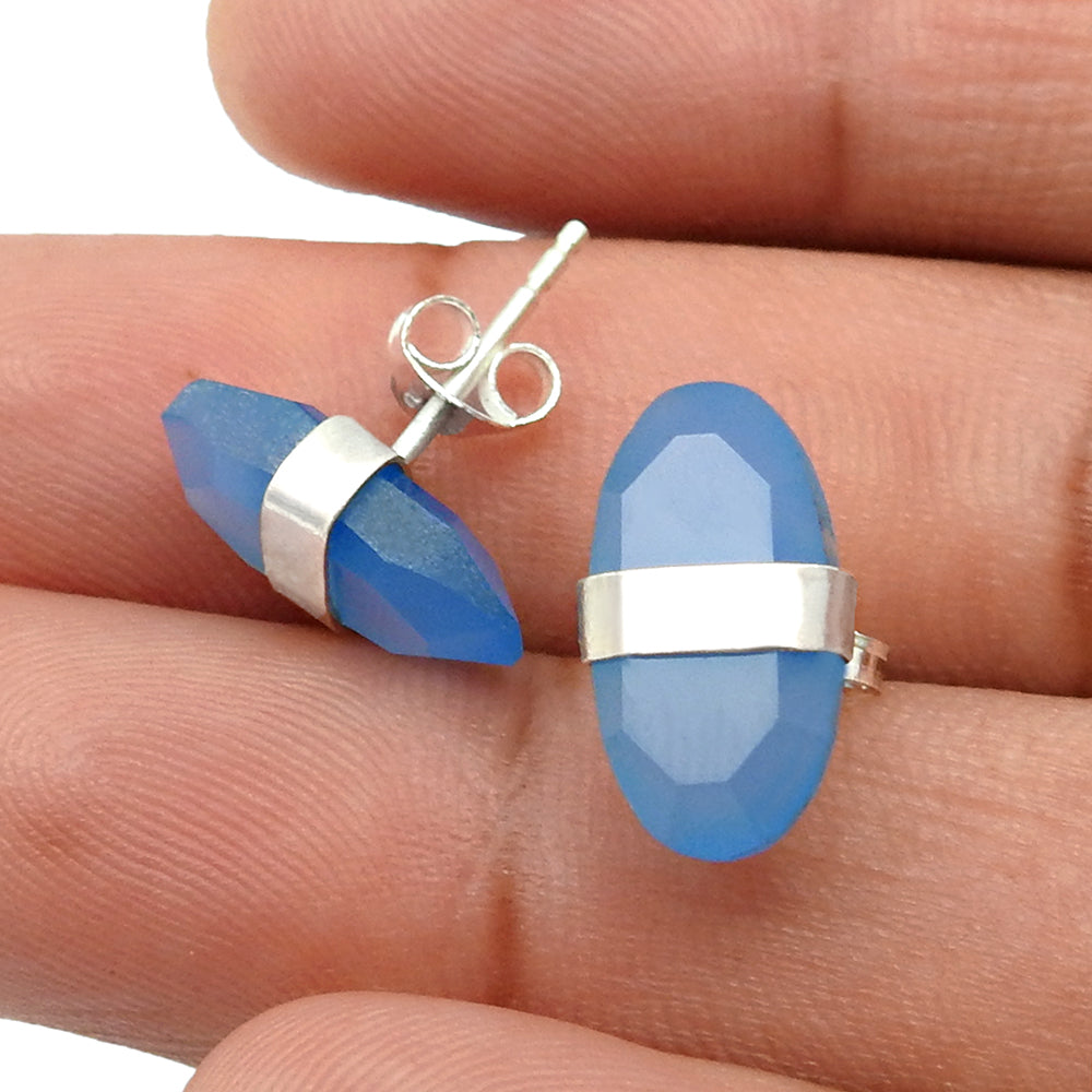 Chalcedony Gemstone Solid Sterling Silver Wedding Stud Post Daughter Earrings