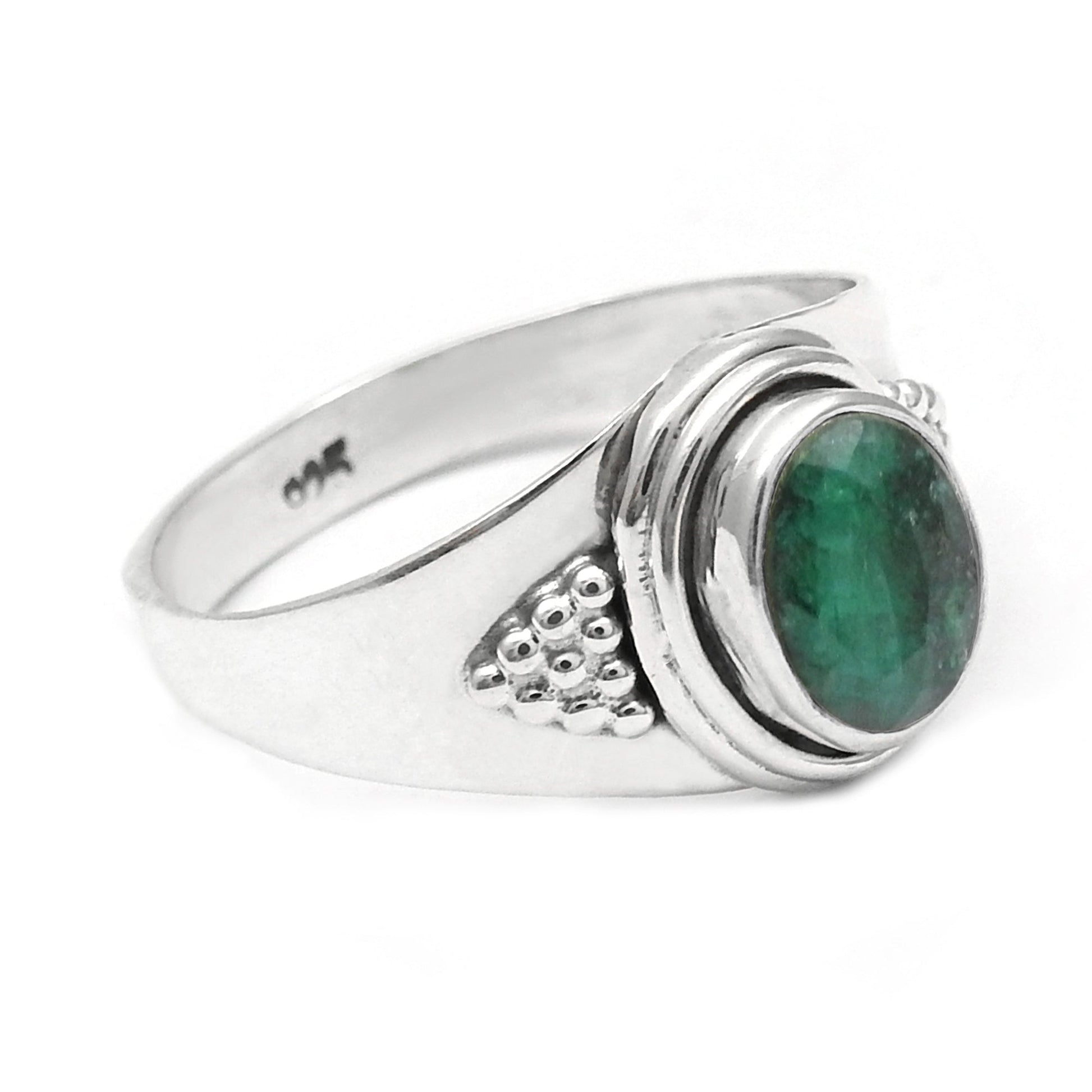 Emerald Gemstone 925 Solid Silver Elegant Promise Wife Band Engagement Ring