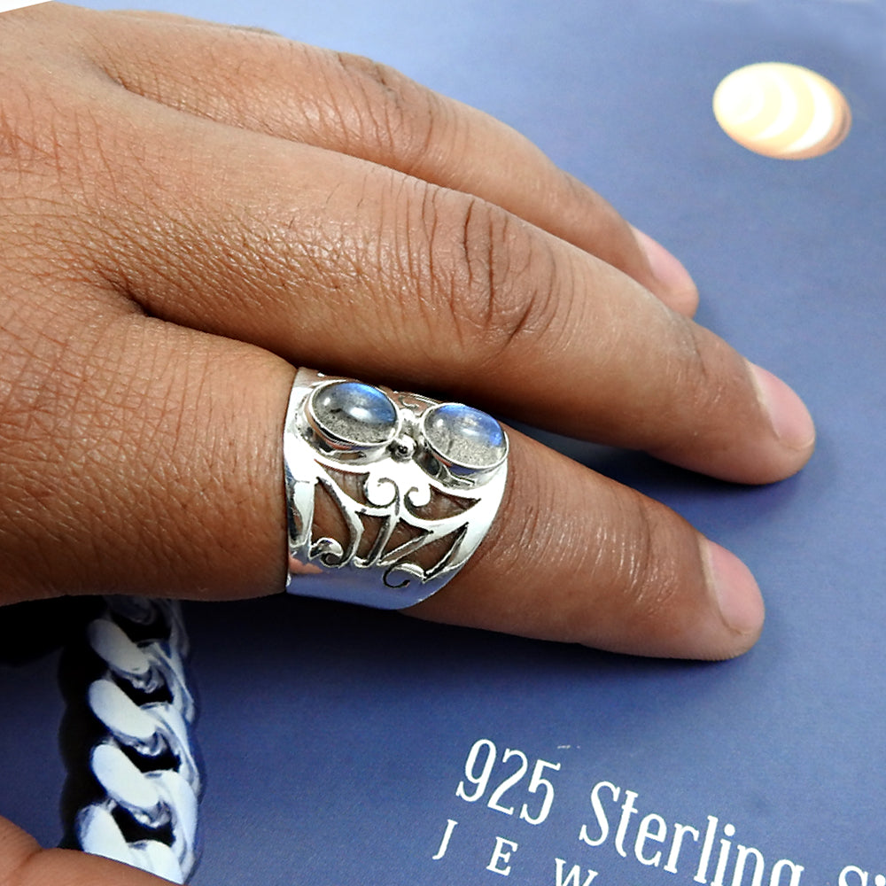 Gift For Woman 925 Silver Natural Labradorite Statement Vintage Ring G2