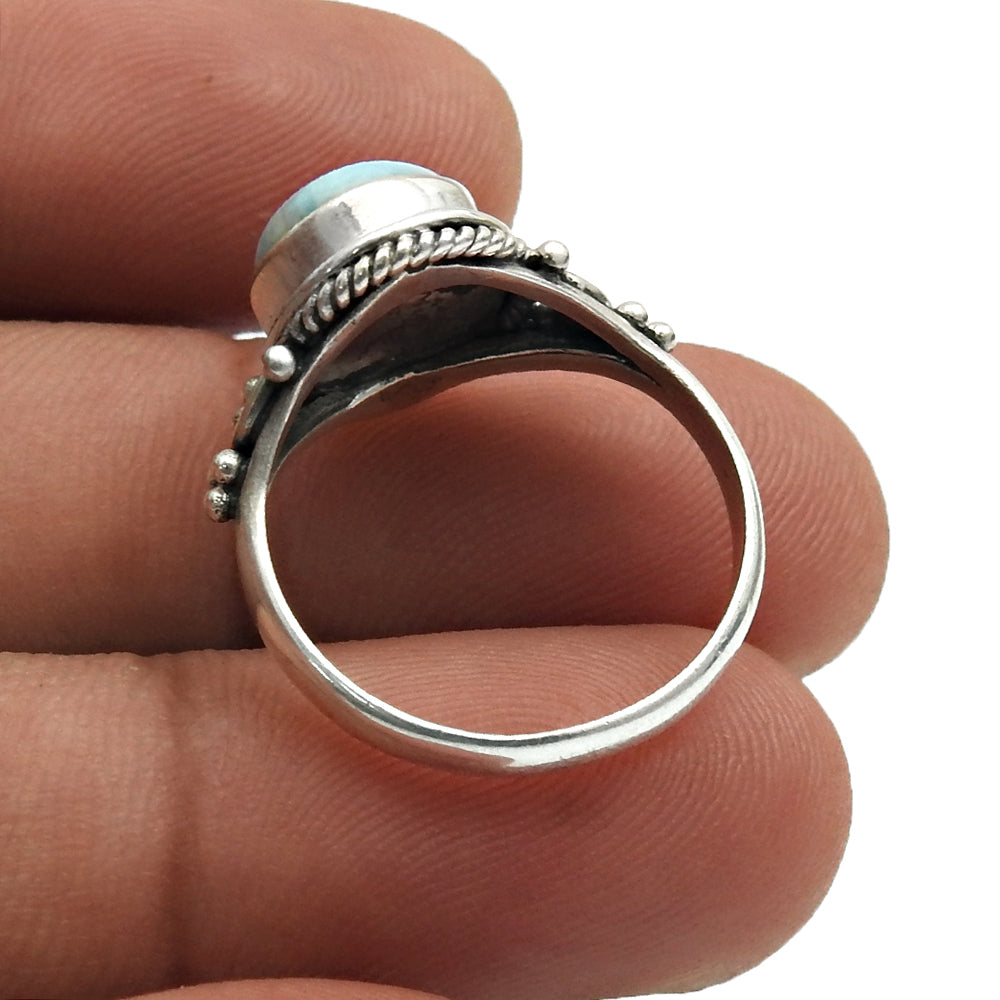 Gift For Woman 925 Silver Natural Larimar Gemstone Statement Ring A6