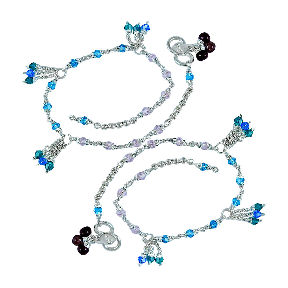 Adorn your feet with the timeless beauty of these sterling silver anklets, featuring vibrant color glass that add a touch of elegance. These anklets are designed to complement both traditional and modern outfits, making them perfect for everyday wear, festive occasions, or special events.