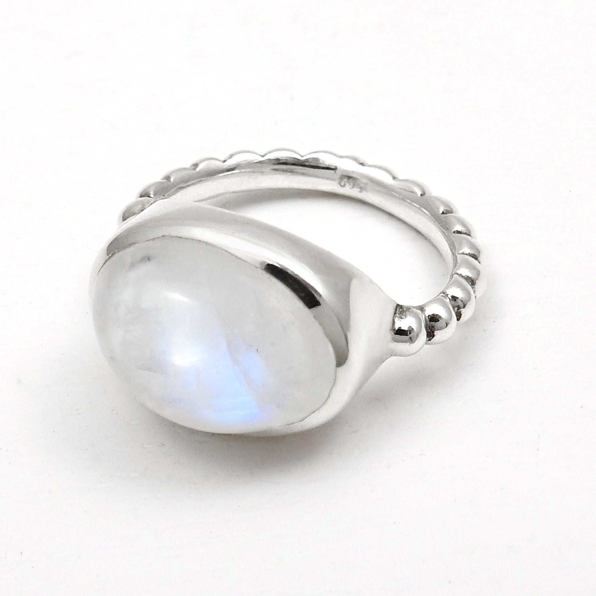 High Quality Natural Rainbow Moonstone 925 Sterling Silver Bezel Cocktail Ring
