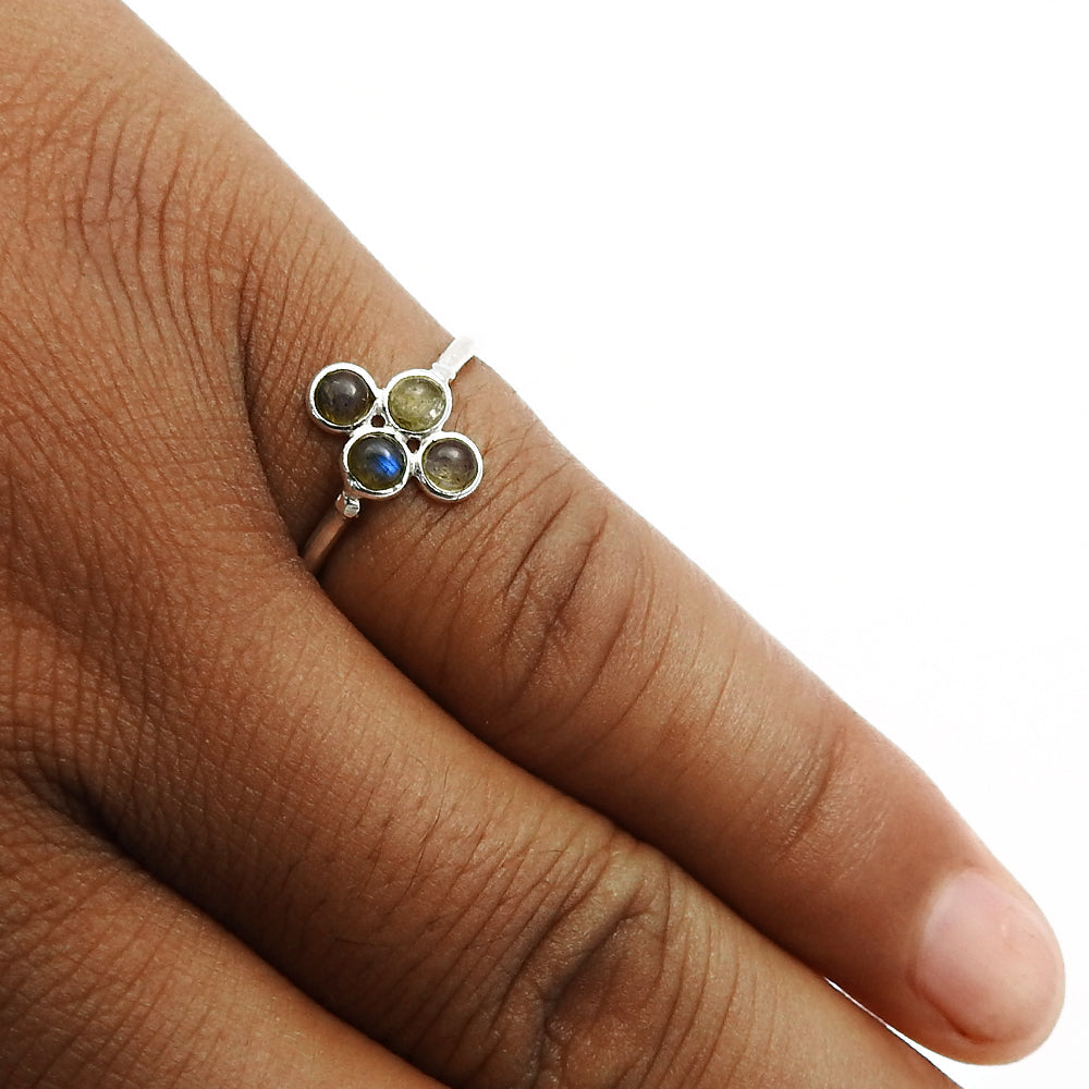 Natural Labradorite Gemstone Solitaire Vintage Ring 925 Silver T7