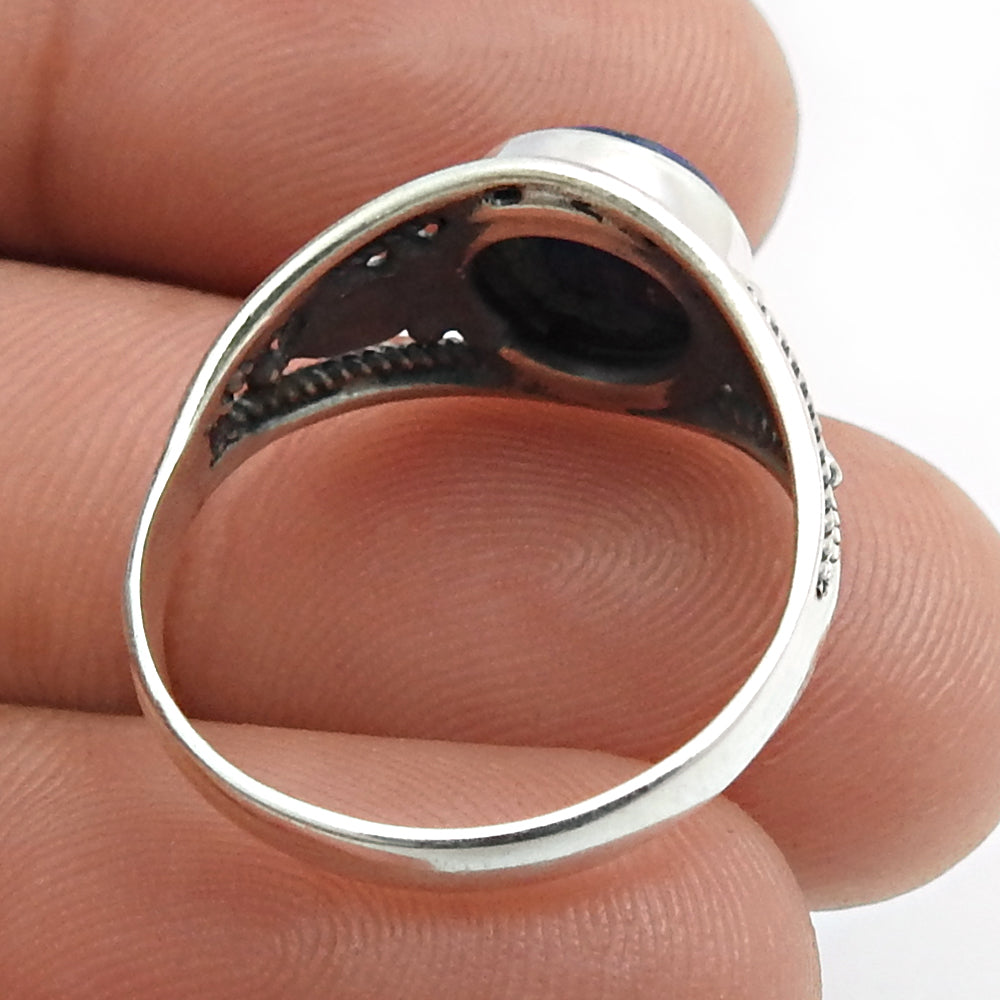 Natural Lapis Lazuli Solitaire Vintage Ring 925 Silver Gift For Girls N18
