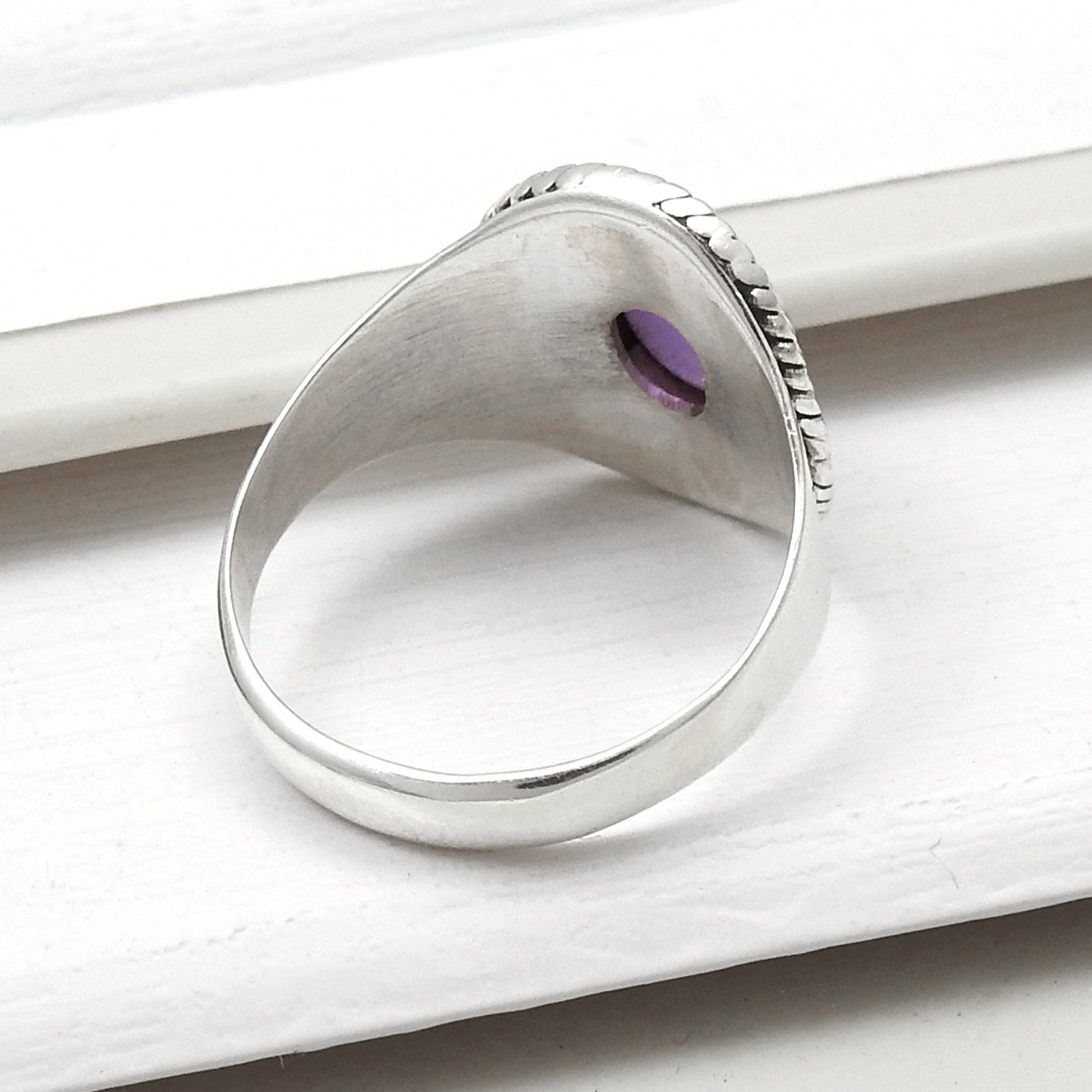Oval Amethyst Stone Solid Silver February Birth Cocktail Bezel Ring Jewelry