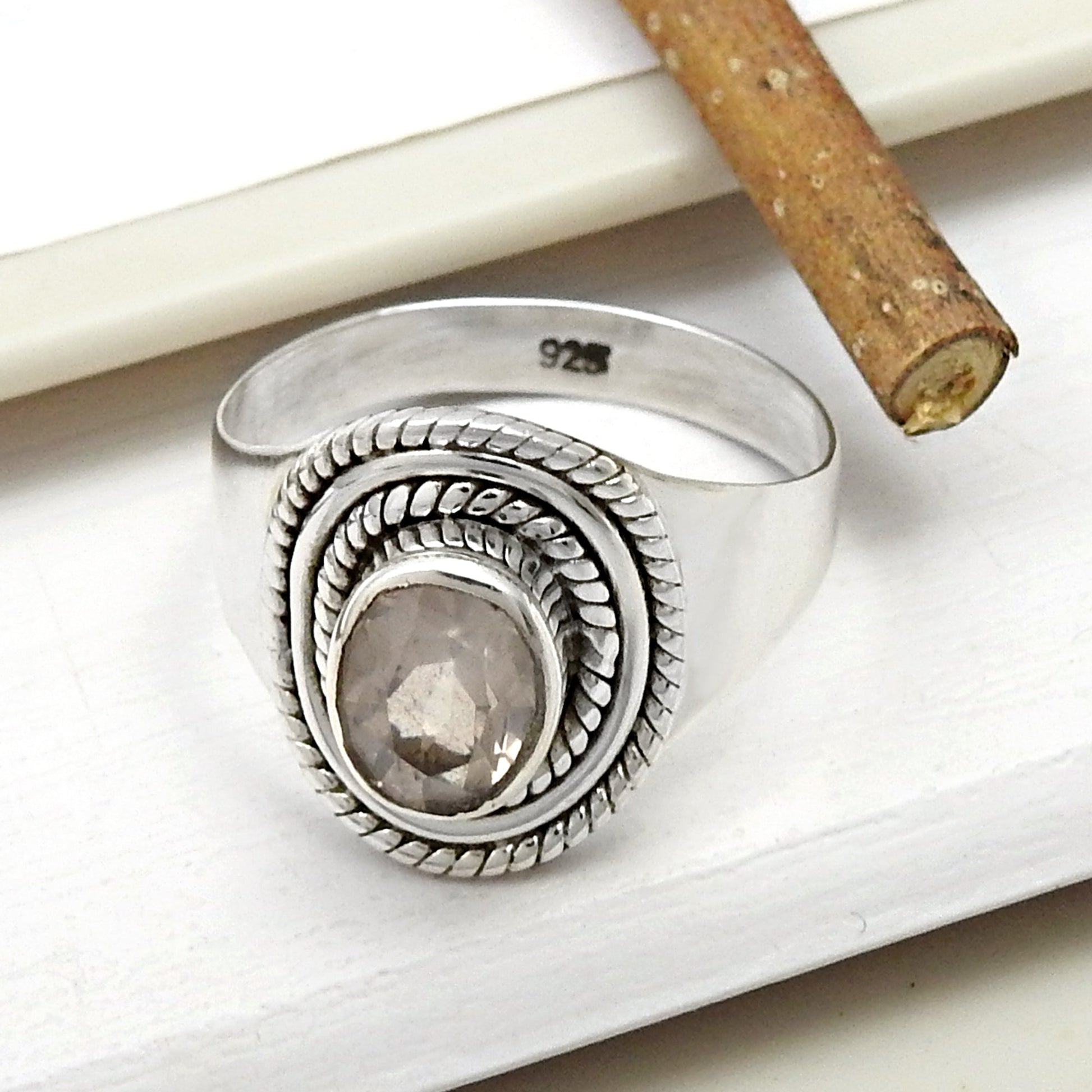 Oval Rose Quartz Gemstone Bezel Cocktail Wife Ring Jewelry 925 Solid Silver