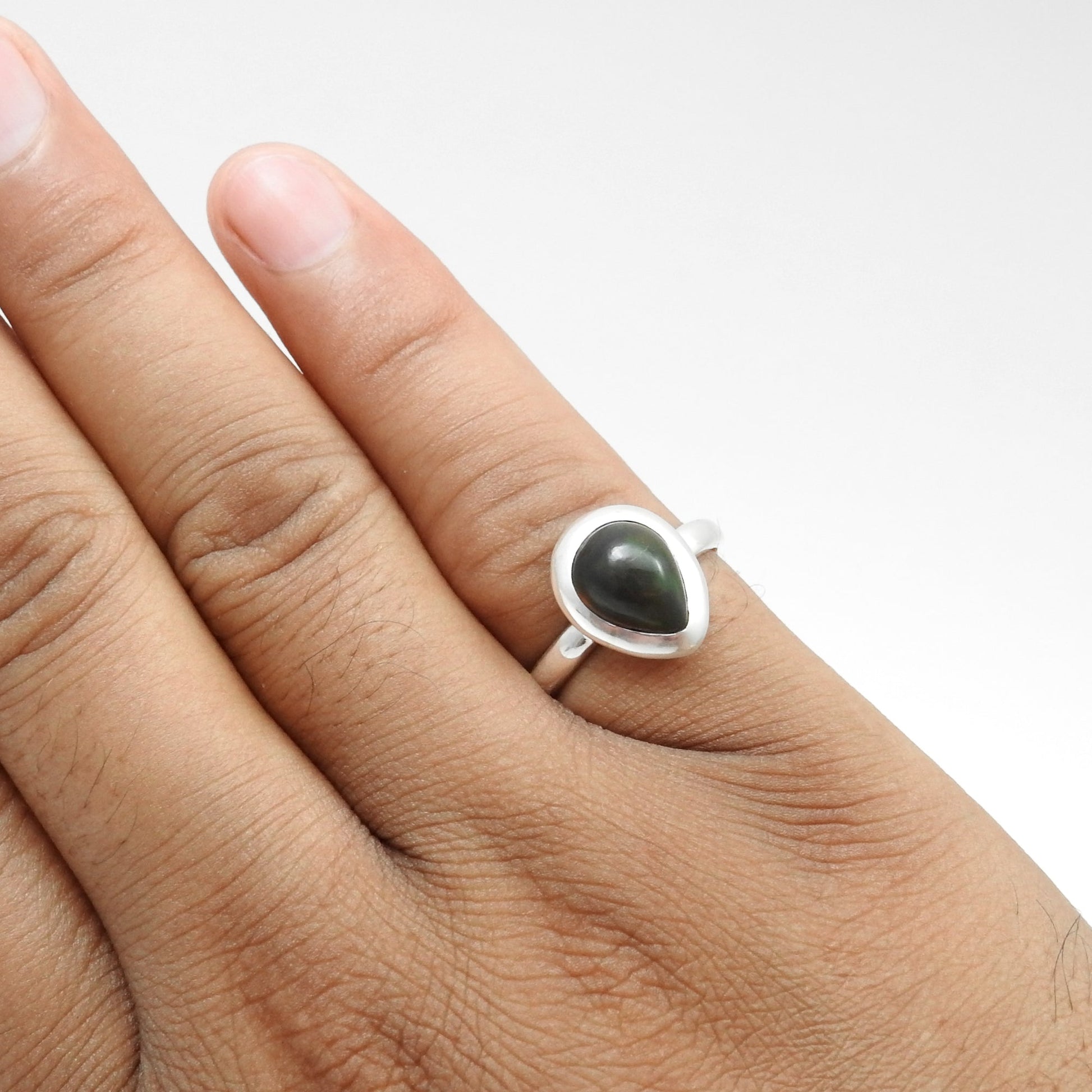 Pear Natural Black Opal Birthday Band Christmas Gift New Ring Jewelry 925 Silver