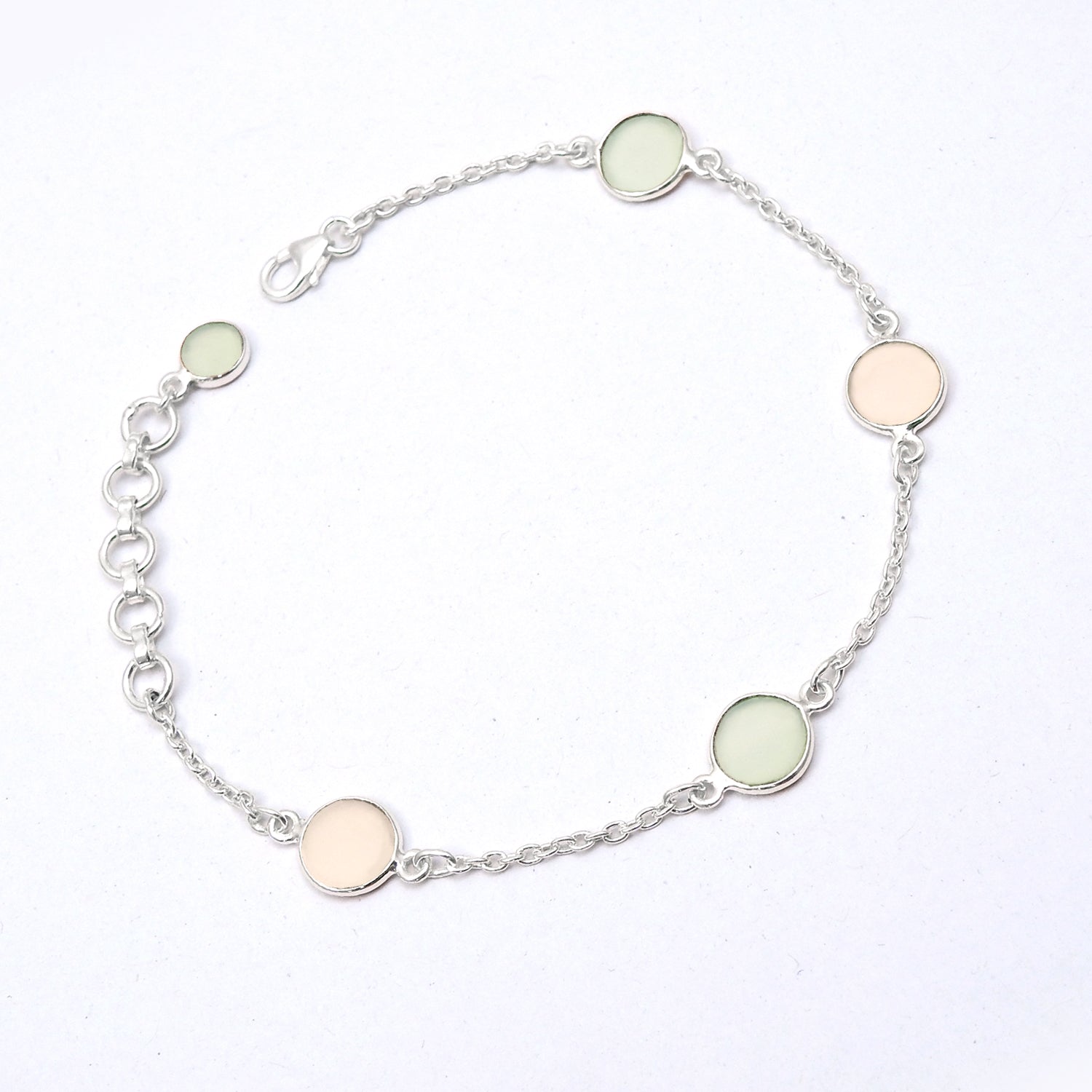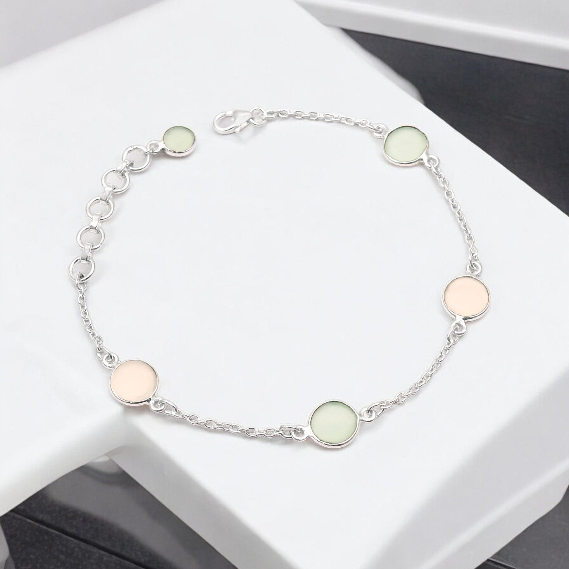Rose Quartz 925 Silver Bezel Chain March Birth Daughter Trendy Bracelet Jewelry