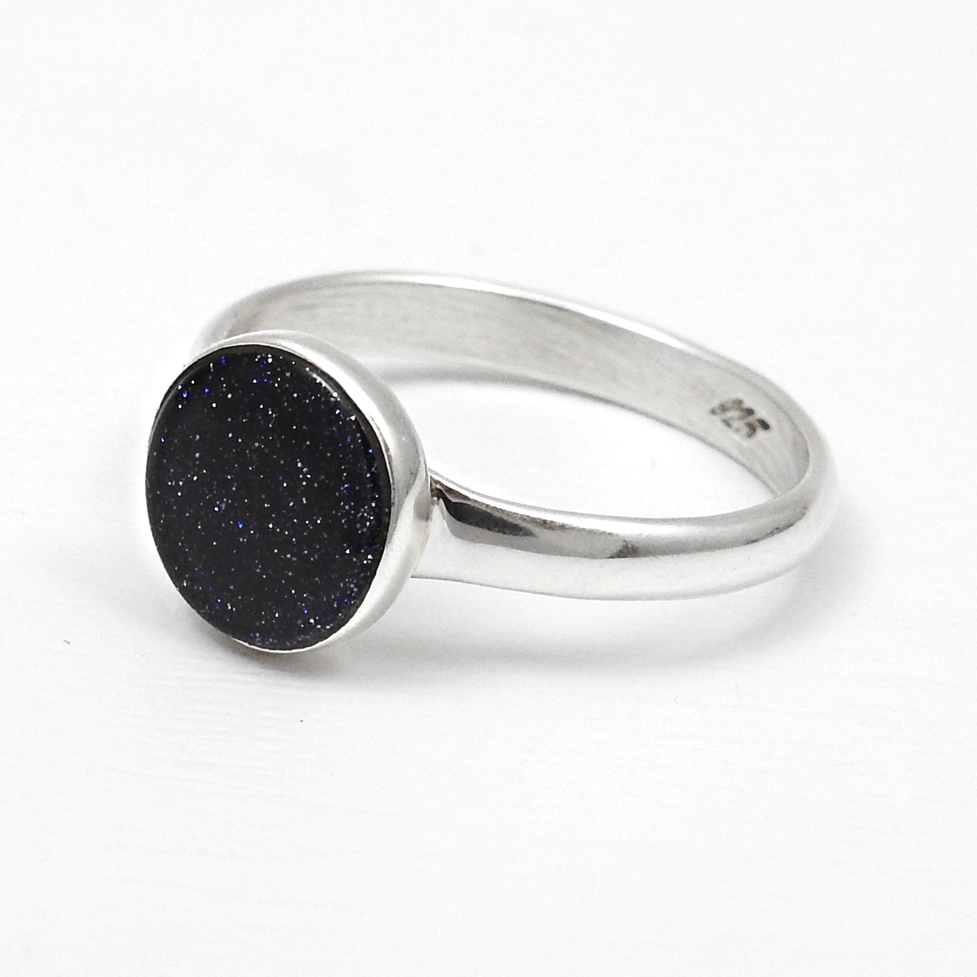 Round Natural Blue Sunstone 925 Silver Bezel Band Ring