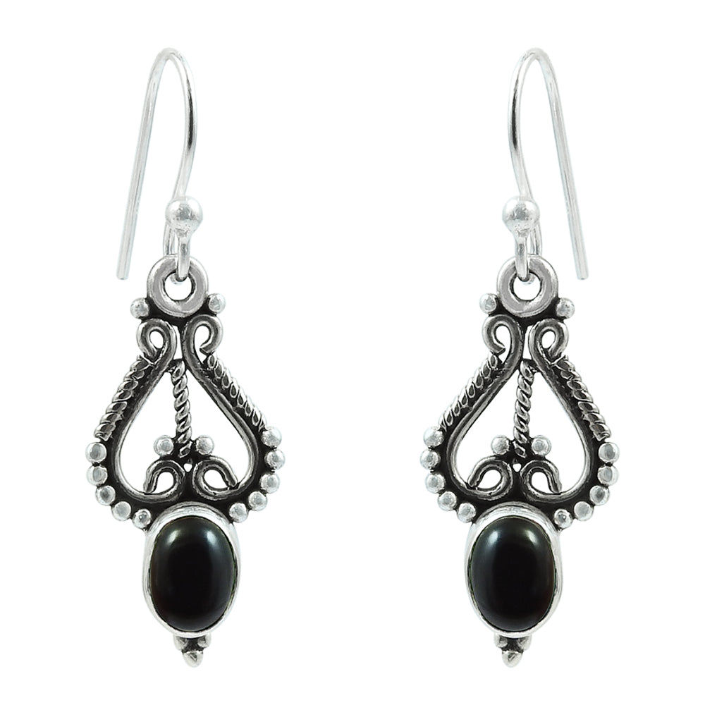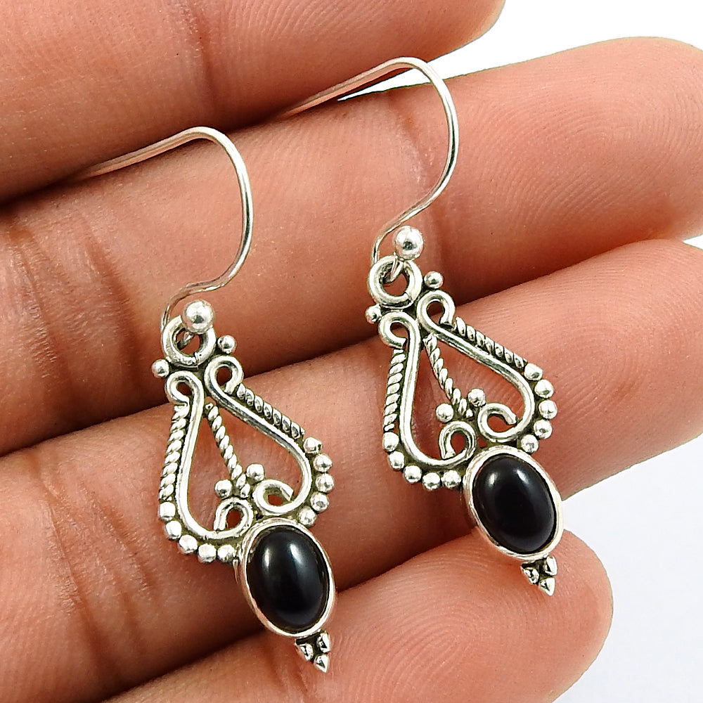 Sisters Day Deal 925 Solid Silver Natural Black Onyx Vintage Dangling Wife Earrings