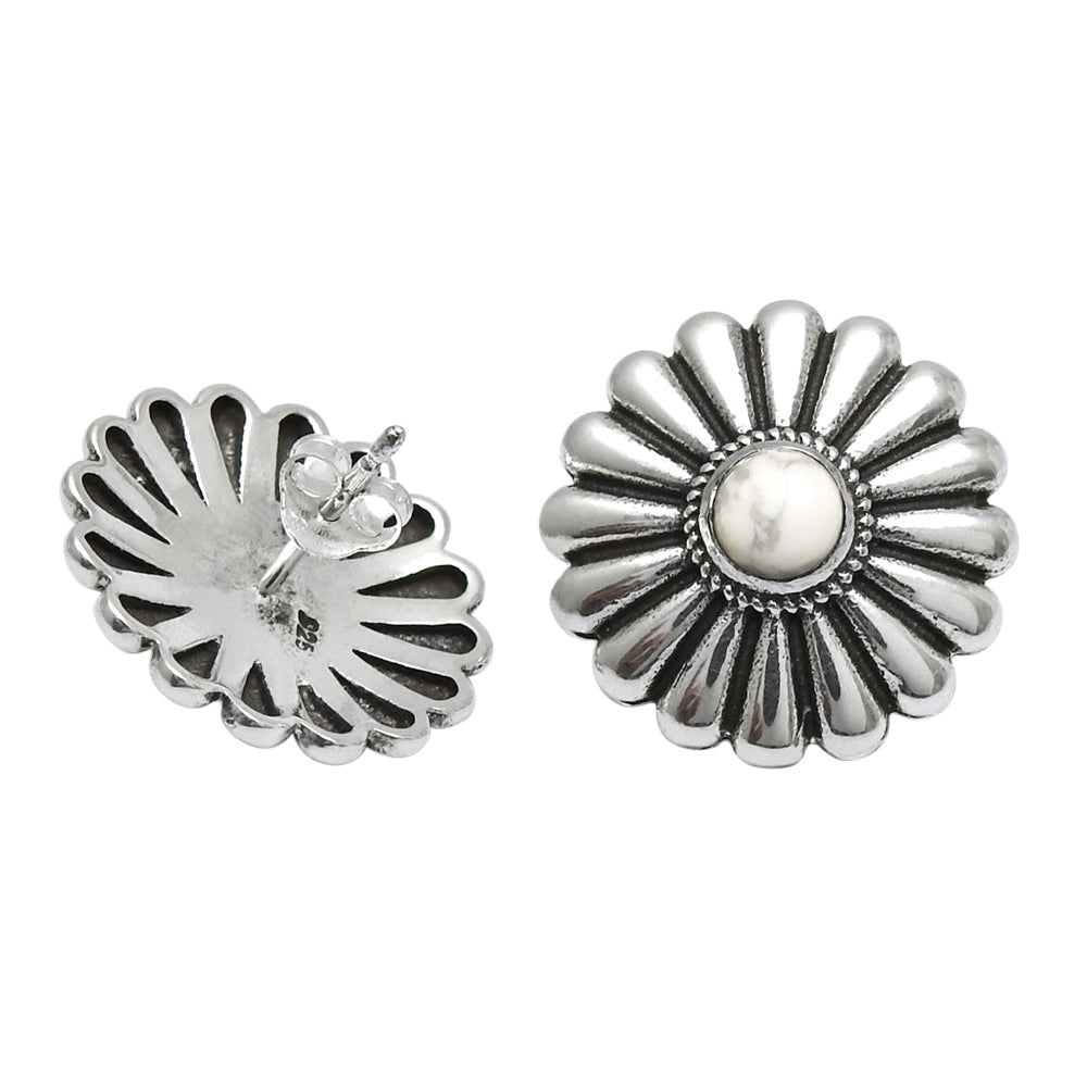 Sterling Silver Throat Chakra Turquoise Stone Daughter Bezel Stud Post Earrings
